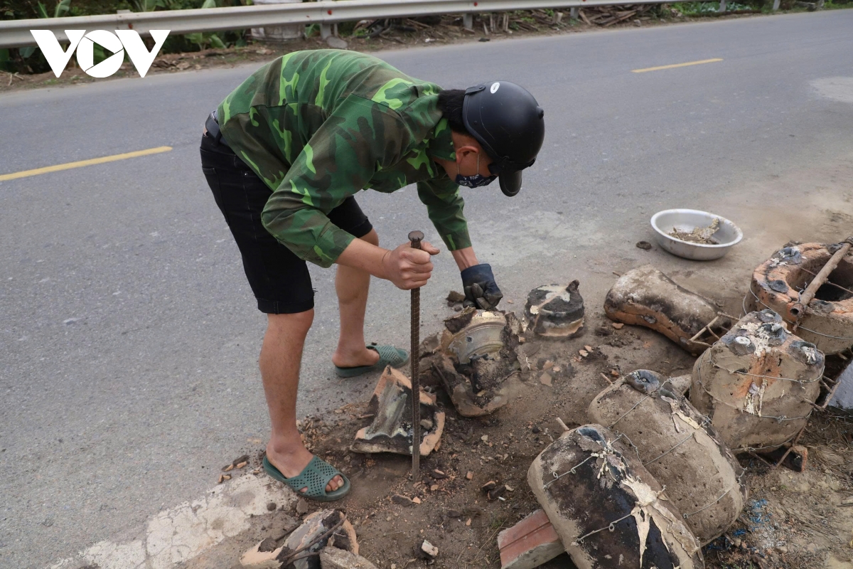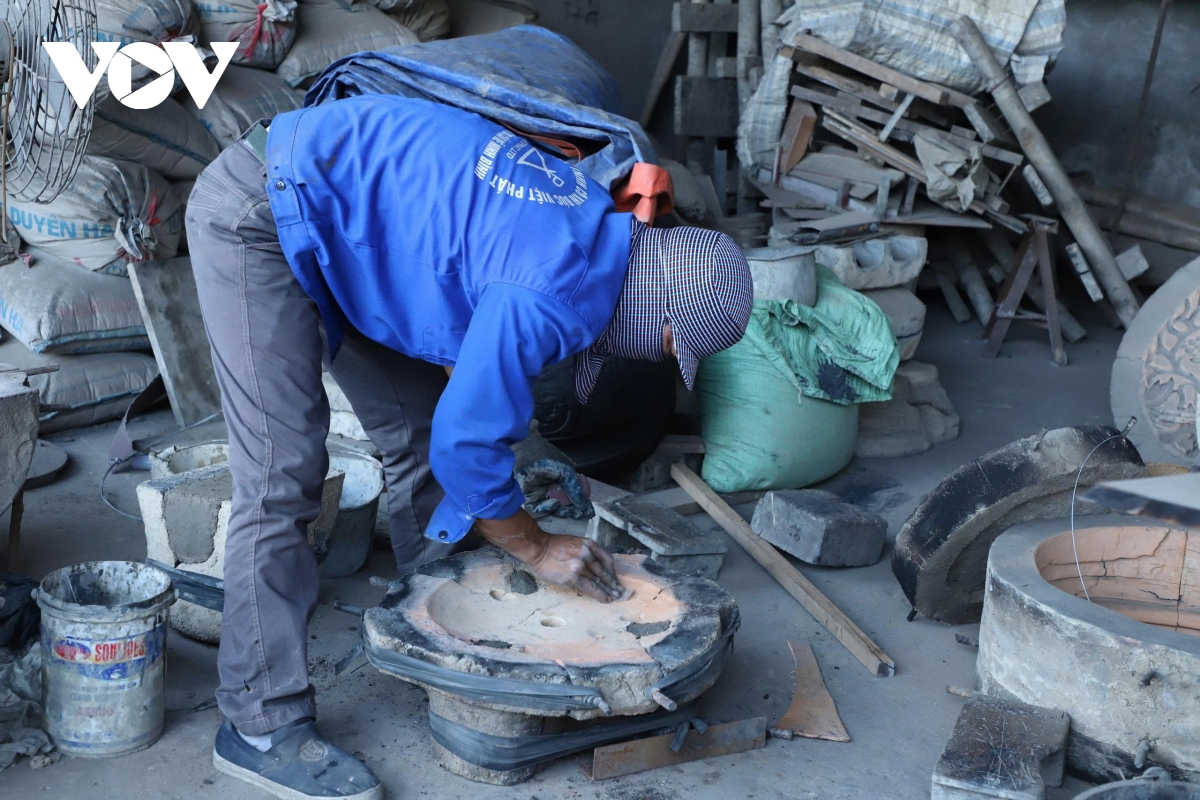 Sau khi đồng nguội và kết tinh hoàn toàn, công nhân sử dụng dụng cụ chuyên dụng để phá khuôn, lấy ra sản phẩm thô. Công đoạn này được thực hiện cẩn trọng nhằm tránh làm sứt mẻ, biến dạng sản phẩm, đồng thời chuẩn bị cho các bước làm sạch, mài giũa và hoàn thiện tiếp theo.