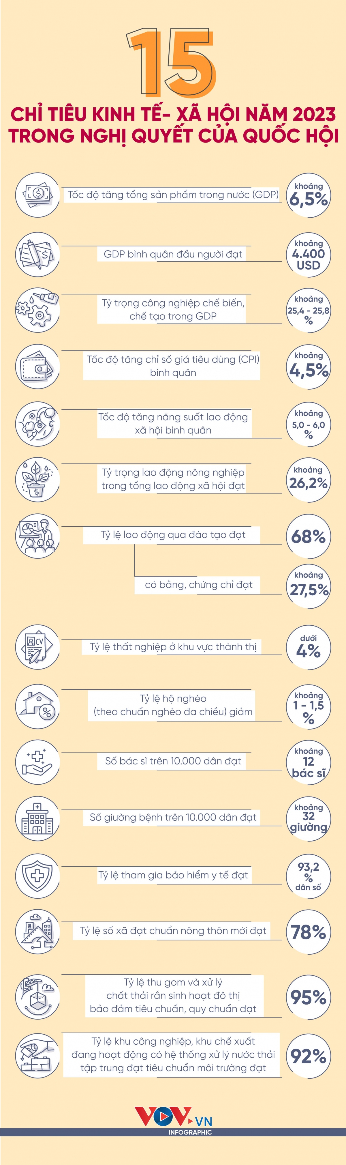 "15 chỉ tiêu kinh tế-xã hội năm 2023 trong Nghị quyết của Quốc hội"