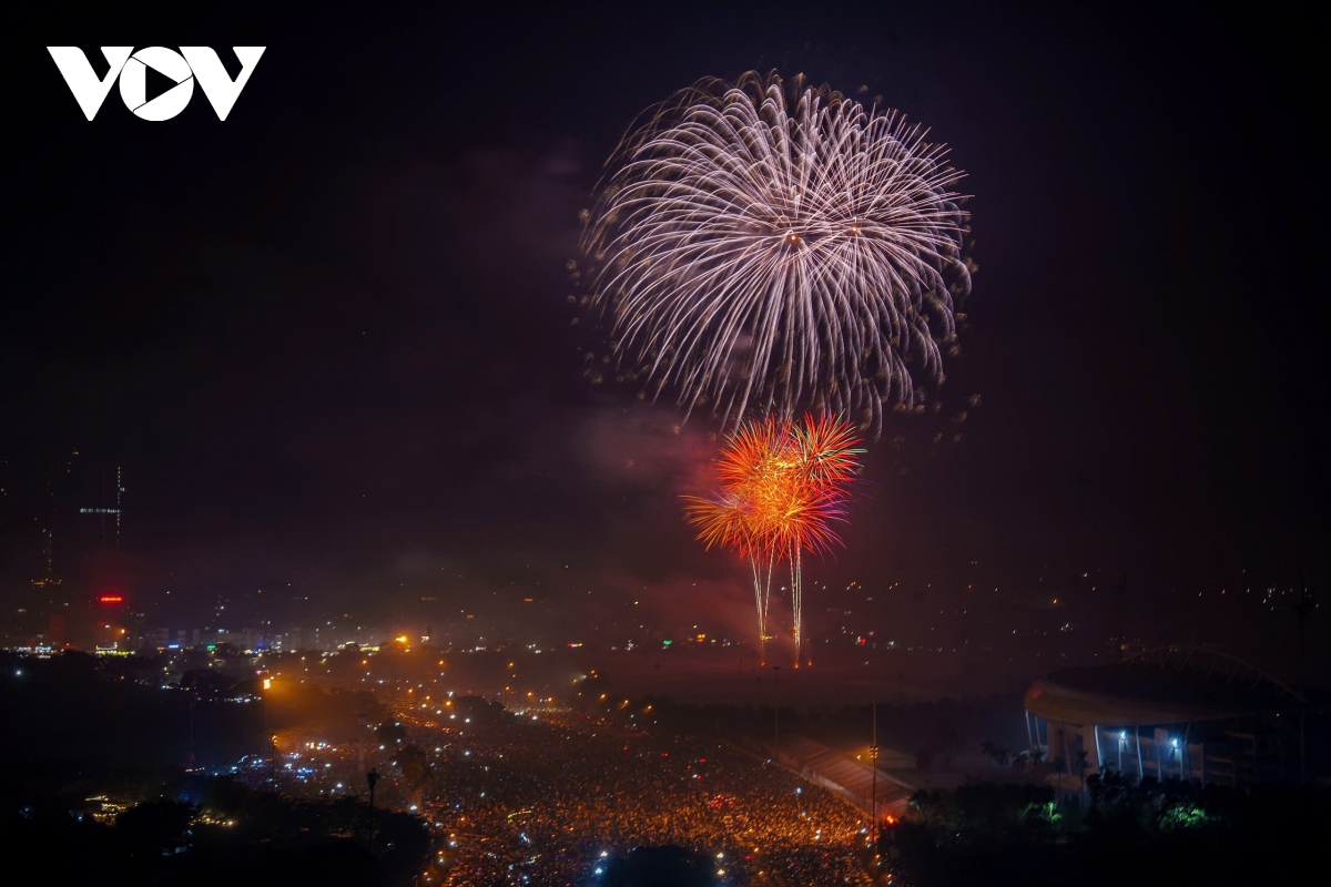 VOV.VN - Tết Dương lịch năm 2025, Hà Nội có tổng số 5 điểm bắn pháo hoa với 6 trận địa bắn pháo hoa tầm cao kết hợp tầm thấp. Người dân Thủ đô đã được thưởng thức màn pháo hoa lung linh, rực rỡ vào khoảnh khắc đón năm mới.