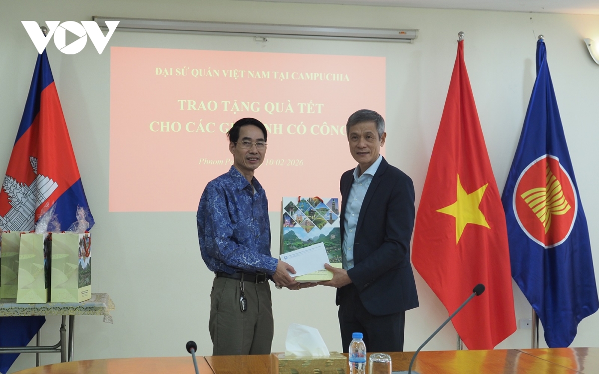 Ngày 10/2, Đại sứ quán Việt Nam đã tổ chức Chương trình thăm hỏi, động viên và trao quà Tết cho các gia đình người gốc Việt tại Campuchia có công với Cách mạng qua các thời kỳ, có đóng góp cho cộng đồng cũng như thúc đẩy quan hệ hai nước Việt Nam - Campuchia.