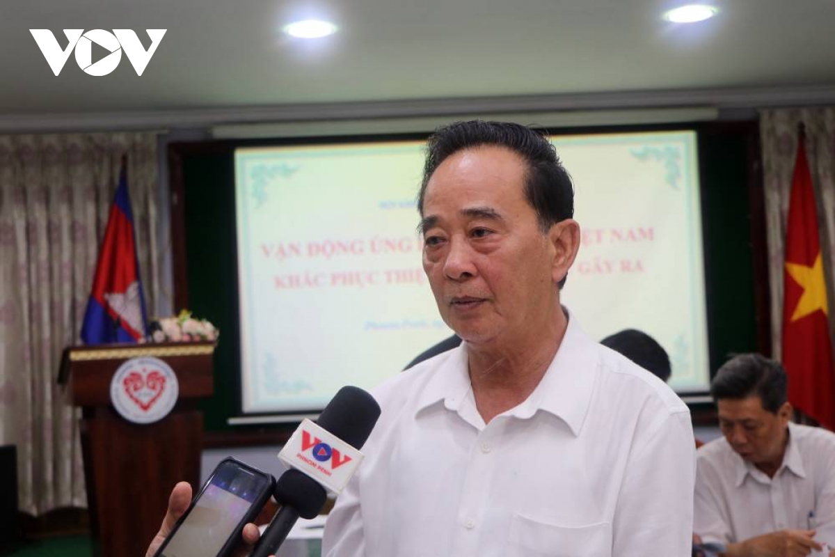 Ông Sim Chy, Chủ tịch Hội Khmer-Việt Nam tại Campuchia cho biết, bà con Việt kiều rất buồn và xúc động khi chứng kiến những khó khăn mà đồng bào trong nước phải đối mặt do thiên tai gây ra. Dù điều kiện kinh tế và cuộc sống còn nhiều khó khăn, nhưng cộng đồng người gốc Việt tại Campuchia luôn một lòng hướng về quê hương, Tổ quốc và đồng bào. Qua lời kêu gọi của Mặt trận Tổ quốc Việt Nam và Đại sứ quán Việt Nam tại Campuchia, ban Thường trực Hội Khmer-Việt Nam đã phát động phong trào quyên góp ở tất cả cộng đồng bà con người Việt thuộc 25 tỉnh, thành tại Campuchia từ ngày 7 đến ngày 16/10/2025.