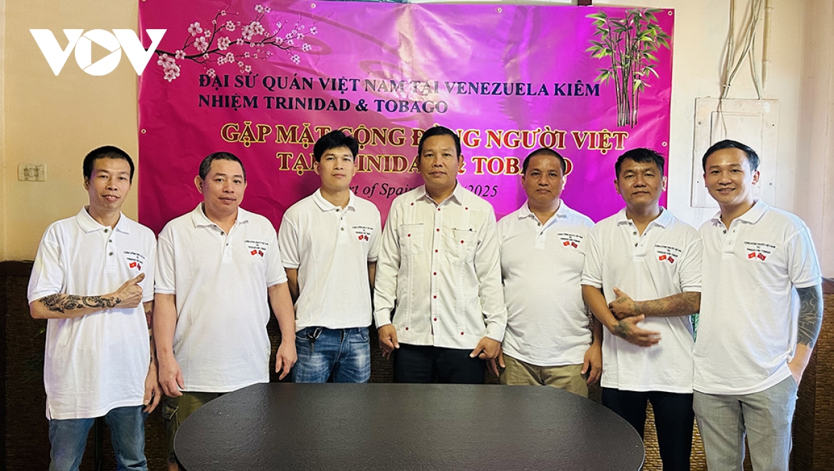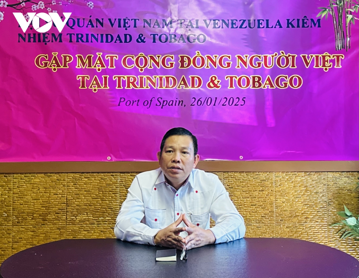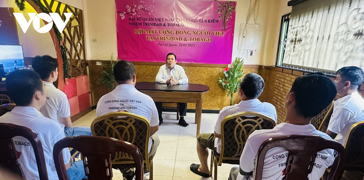 VOV.VN - Ngày 26/1, tại thủ đô Port of Spain, Đoàn công tác của Đại sứ quán Việt Nam tại Venezuela kiêm nhiệm Trinidad và Tobago do Đại sứ Vũ Trung Mỹ dẫn đầu đã có chuyến thăm, gặp gỡ với cộng đồng người Việt Nam tại Cộng hòa Trinidad và Tobago.