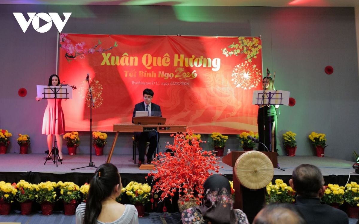 VOV.VN - Tối 5/2, Đại sứ quán Việt Nam tại Mỹ đã tổ chức chương trình Tết cộng đồng Xuân Quê Hương – Tết Bính Ngọ 2026 tại Washington D.C., với sự tham dự đông đảo bà con kiều bào, bạn bè quốc tế và đại diện các cơ quan sở tại.