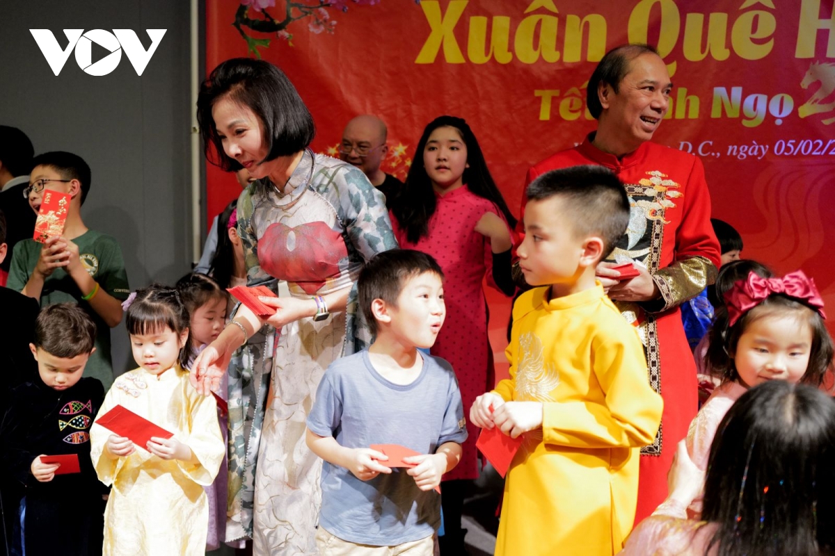 Trong không gian được trang trí rực rỡ với đào, mai, câu đối đỏ… bà con kiều bào và bạn bè quốc tế đã cùng nhau thưởng thức các tiết mục văn nghệ, trình diễn, múa hát thiếu nhi và tìm hiểu nét đẹp Tết cổ truyền Việt Nam. Nhiều đại biểu, khách mời mặc áo dài truyền thống, tạo nên bầu không khí ấm áp, sum vầy, đậm bản sắc văn hóa dân tộc ngay giữa thủ đô Washington D.C.