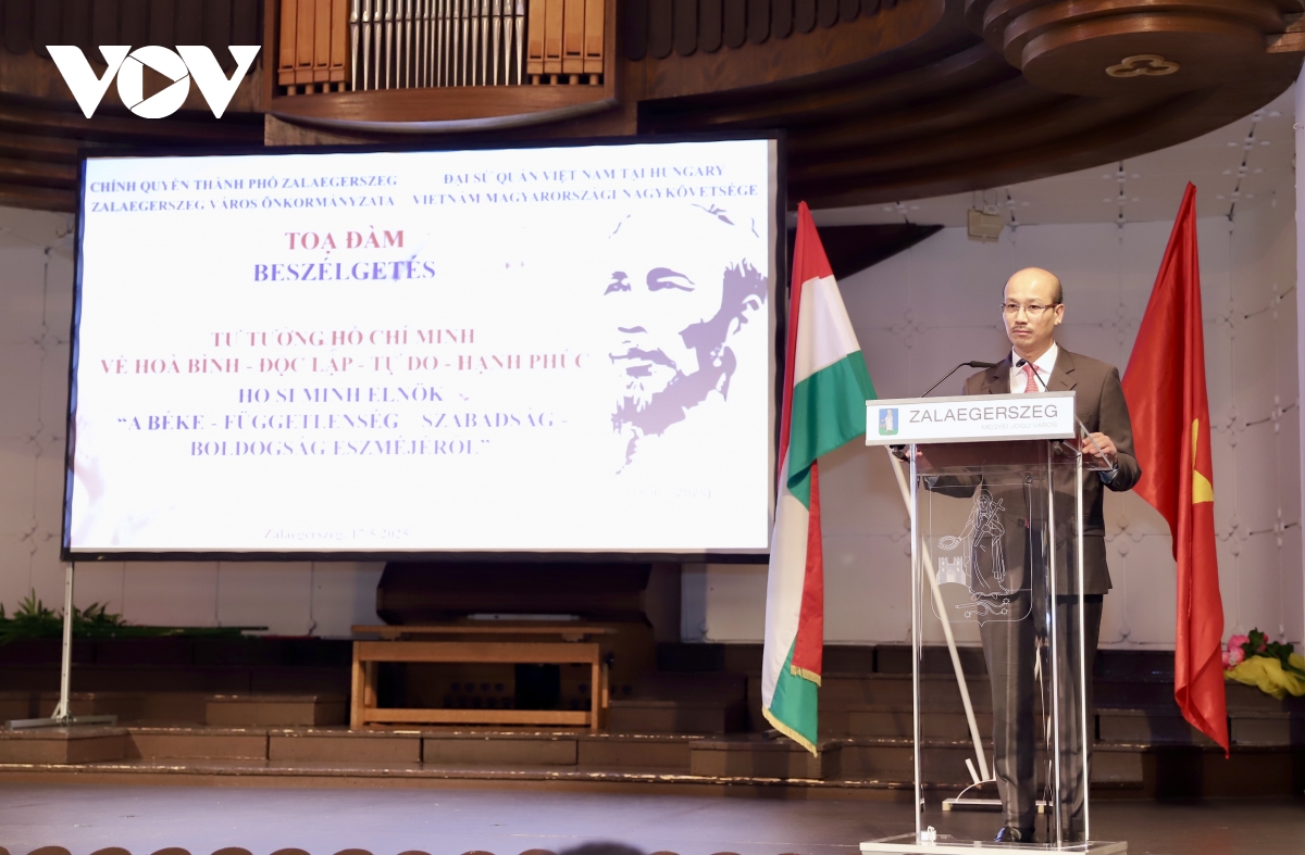 VOV.VN - Kỷ niệm 135 năm ngày sinh Chủ tịch Hồ Chí Minh (19/5/1890 - 19/5/2025), Đại sứ quán Việt Nam tại Hungary đã phối hợp với chính quyền Thành phố Zalaegerszeg tổ chức lễ dâng hoa tại tượng đài Chủ tịch Hồ Chí Minh và Tọa đàm về tư tưởng của Chủ tịch Hồ Chí Minh về hòa bình, độc lập, tự do, hạnh phúc.