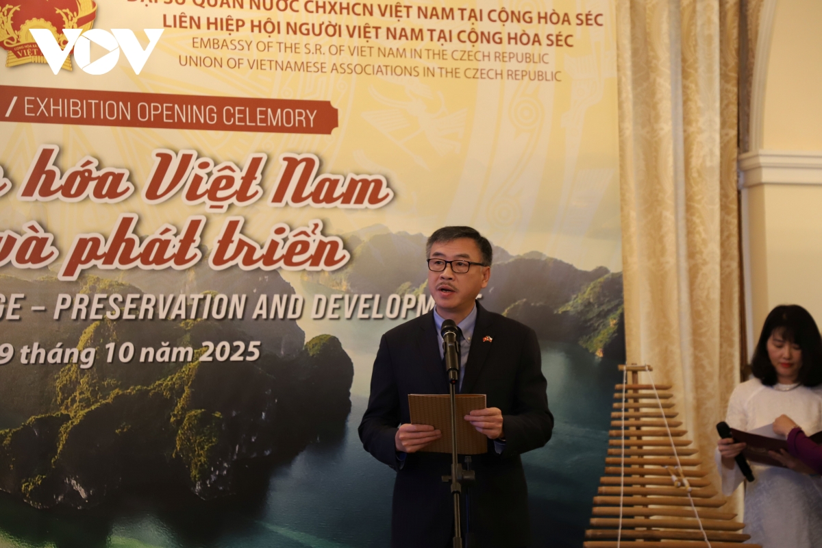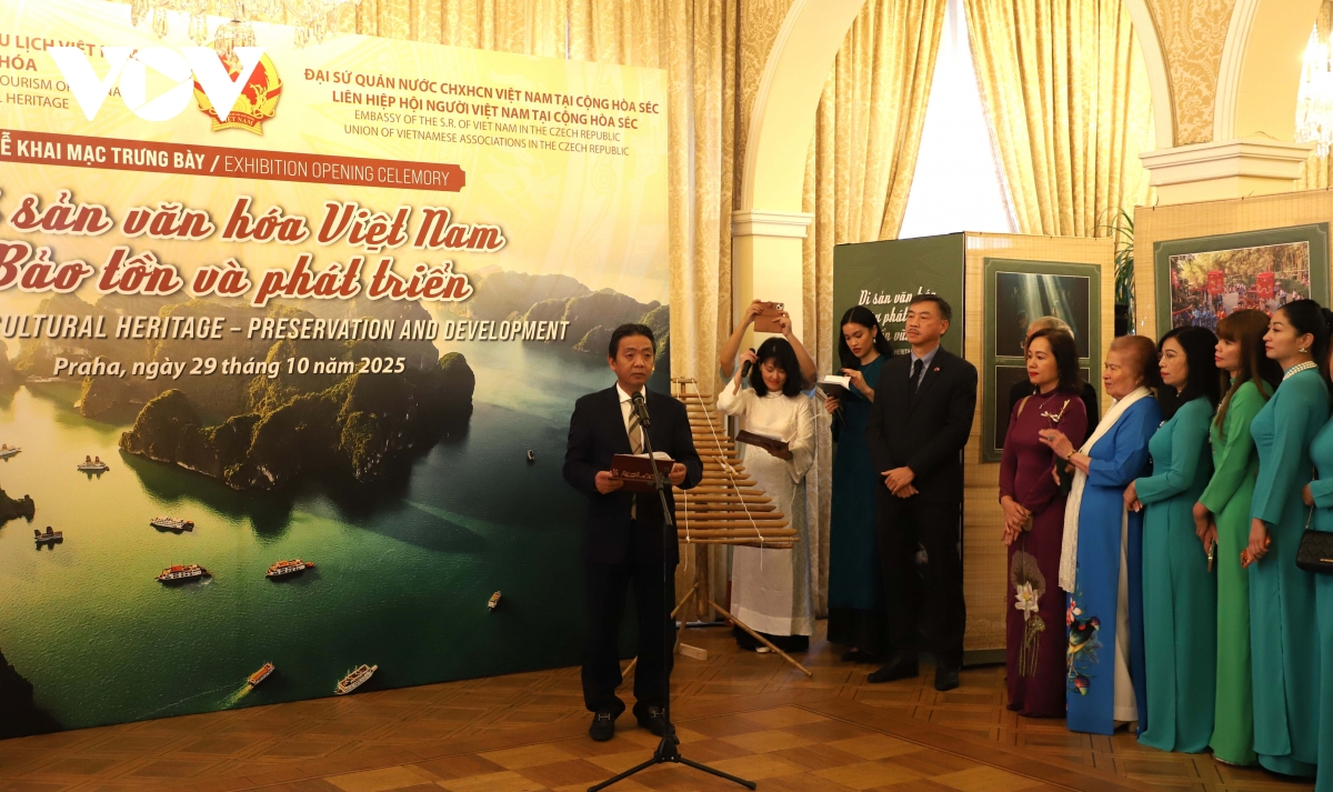 VOV.VN - Nhân kỷ niệm 75 năm thiết lập quan hệ ngoại giao Việt Nam – Cộng hòa Séc (1950–2025) và Ngày Di sản văn hóa Việt Nam (23/11), ngày 29/10, tại Praha, Bộ Văn hóa, Thể thao và Du lịch phối hợp Đại sứ quán Việt Nam tại Cộng hòa Séc khai mạc trưng bày “Di sản văn hóa Việt Nam – Bảo tồn và phát triển”.
