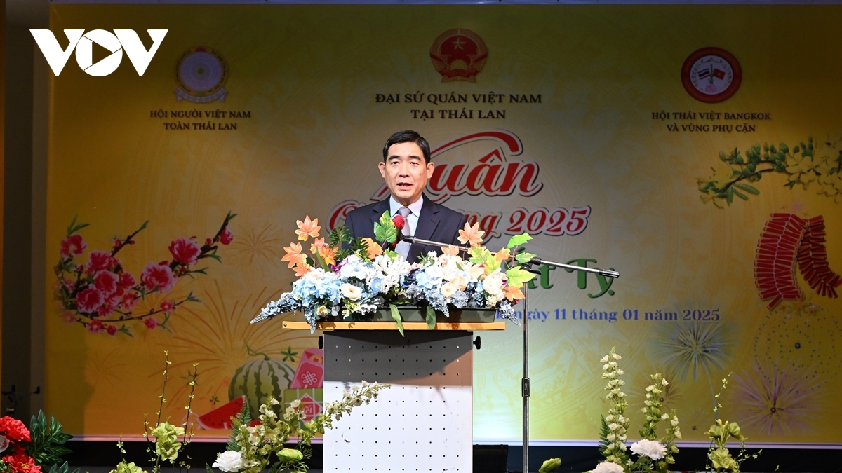 Đại sứ Phạm Việt Hùng nhấn mạnh: “Năm 2025 - Ất Tỵ có ý nghĩa đặc biệt đối với dân tộc Việt Nam, là năm kỷ niệm 80 năm thành lập nước CHXHCN Việt Nam và 50 năm thống nhất đất nước, được coi là năm bản lề để Việt Nam bước vào kỷ nguyên mới, kỷ nguyên vươn mình của dân tộc. Tôi mong rằng toàn thể cộng đồng người Việt Nam đang sinh sống, lao động, học tập trên đất nước tại Thái Lan sẽ tiếp tục đạt được thành công trong mọi lĩnh vực, cùng chung sức, đồng lòng vun đắp cho quan hệ hữu nghị hai nước Việt Nam – Thái Lan, đóng góp cho sự phát triển của cả hai dân tộc”.