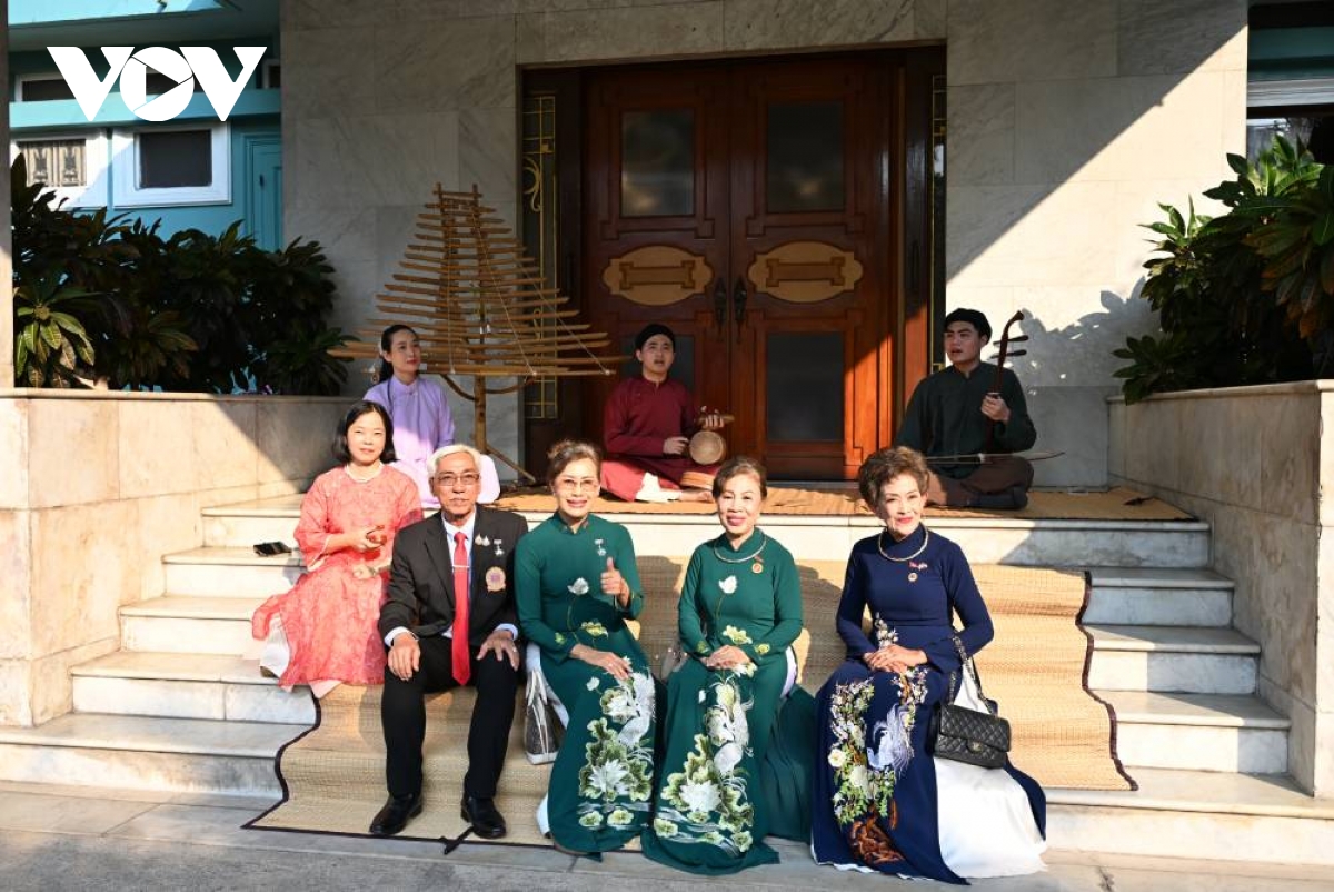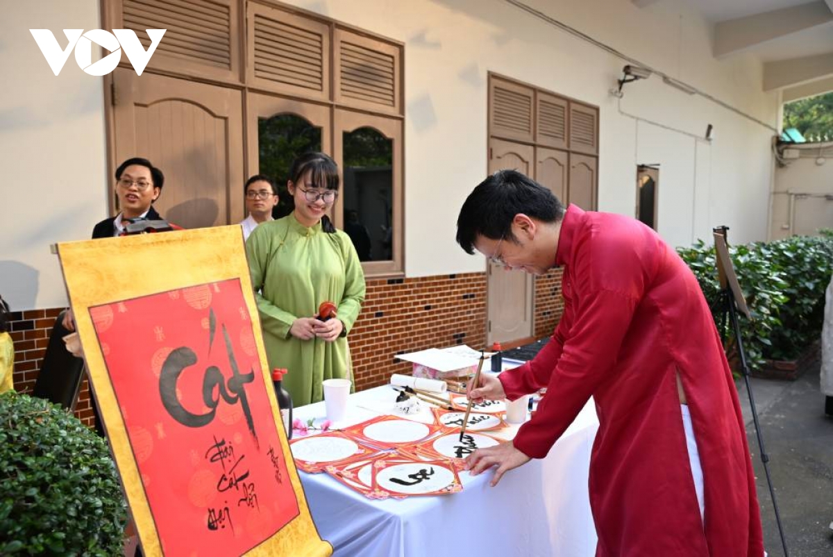 Mở đầu hội xuân, nghi thức dâng hương tại phòng thờ Chủ tịch Hồ Chí Minh đã diễn ra trong không khí thành kính, thể hiện lòng tri ân sâu sắc của kiều bào đối với vị lãnh tụ kính yêu. Giữa không gian rực rỡ sắc xuân, Đại sứ Phạm Việt Hùng nhấn mạnh: "Tết đối với mỗi người Việt Nam chúng ta luôn là thời khắc rất đặc biệt, không chỉ là thời khắc chuyển giao của đất trời, mà còn là lúc mỗi người hướng về gia đình, về quê hương, về cội nguồn. “Tết cộng đồng” luôn là dịp để bà con ta thêm gắn bó, thêm sẻ chia, để dù ở xa Tổ quốc, chúng ta vẫn cảm nhận rất rõ tình đồng bào, nghĩa quê hương”.