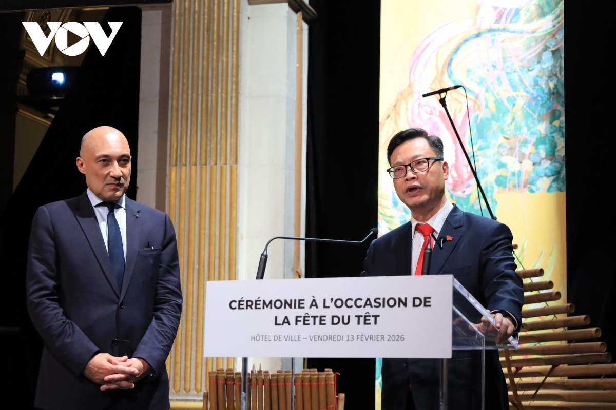 "Thưa ngài Đại sứ, chúng tôi sẽ tiếp tục thúc đẩy sự hợp tác này và phát huy các giá trị đoàn kết, đa dạng mà người dân Paris cũng như người dân Việt Nam cùng chia sẻ... Chúc mừng năm mới, chúc các bạn hạnh phúc, thịnh vượng và trường thọ", Phó Thị trưởng Arnaud Ngatcha nói.