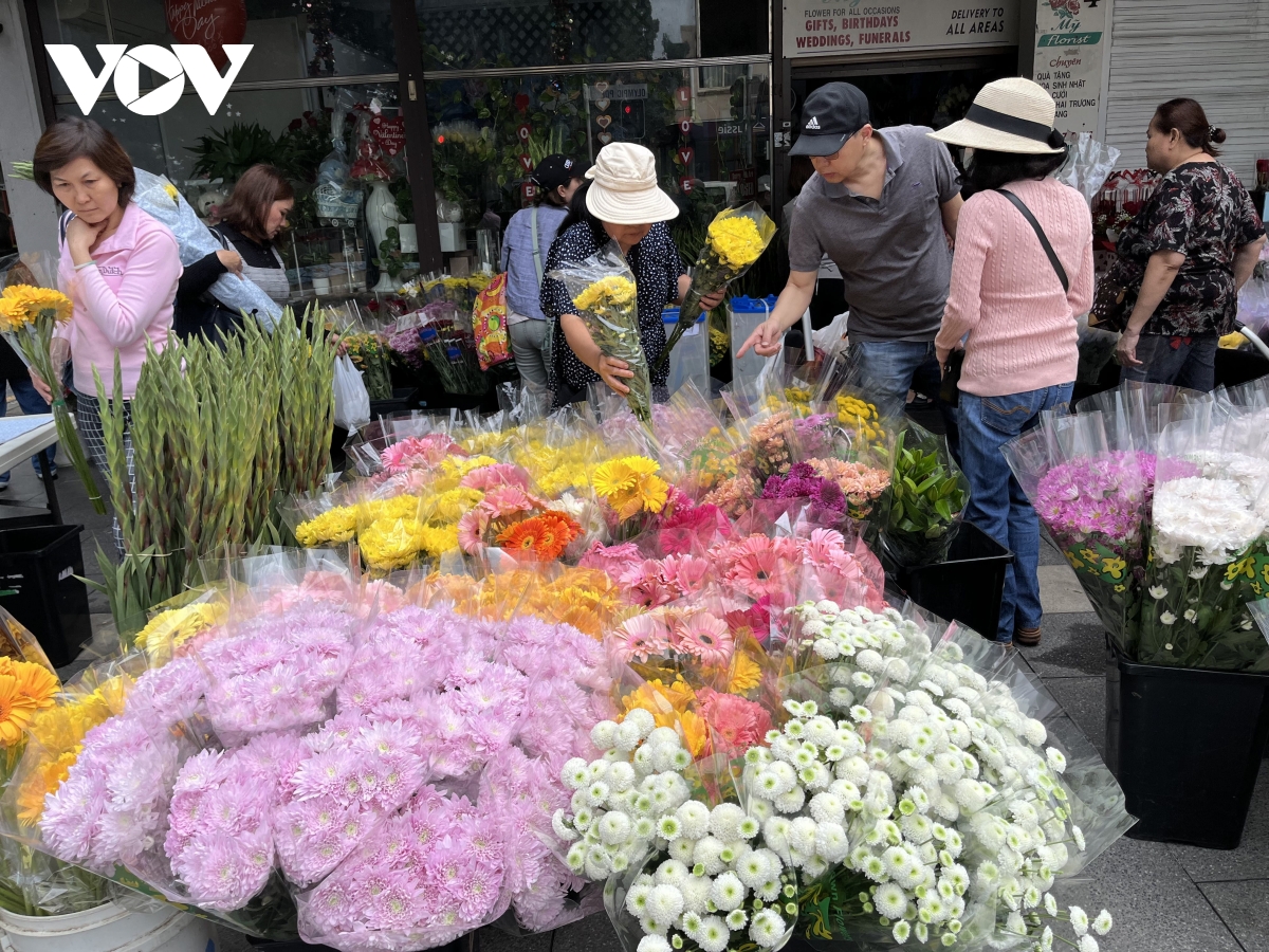Vì là chợ Tết nên cũng không thể thiếu hoa Tết. Một số cửa hàng bán hoa lay-ơn, hoa cúc vạn thọ hay nhiều loại hoa màu sắc rực rỡ để các gia đình có thể mua về trang trí nhà cửa. Tại Australia đang là mùa hè nên không có hoa đào, hoa mai vì thế ngoài hoa tươi, các cành hoa đào, hoa mai giả cũng được bày bán để giúp các gia đình có thể lưu giữ không khí Tết lâu hơn.