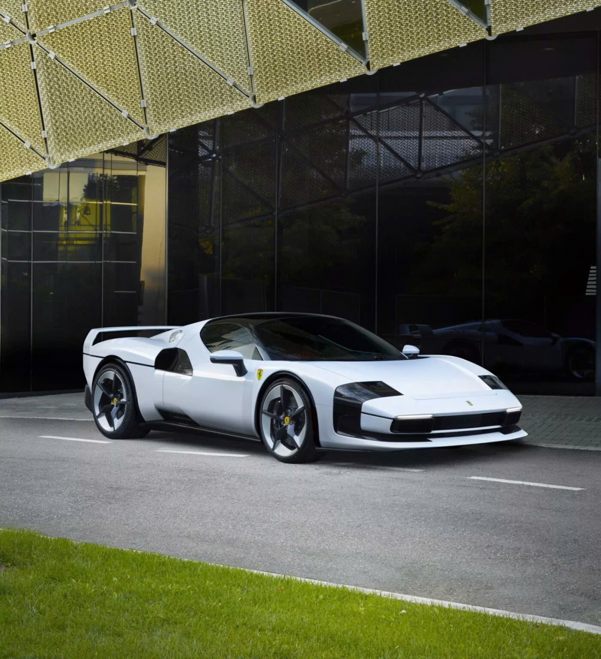SC40 khoác lên mình màu sơn trắng Bianco SC40 độc quyền, kết hợp bộ mâm năm chấu hai tông màu và logo Ferrari vàng tạo nên diện mạo tương phản đầy tinh tế. Bên trong khoang lái, các chi tiết như bảng điều khiển, táp-lô, lẫy số và hốc để chân đều được chế tác từ sợi carbon-kevlar – lần đầu xuất hiện trên xe Ferrari hiện đại. Ghế SC40 bọc vải kỹ thuật Jacquard đỏ cùng da Alcantara xám đậm, mang lại không khí thể thao và sang trọng đặc trưng của thương hiệu Ý.