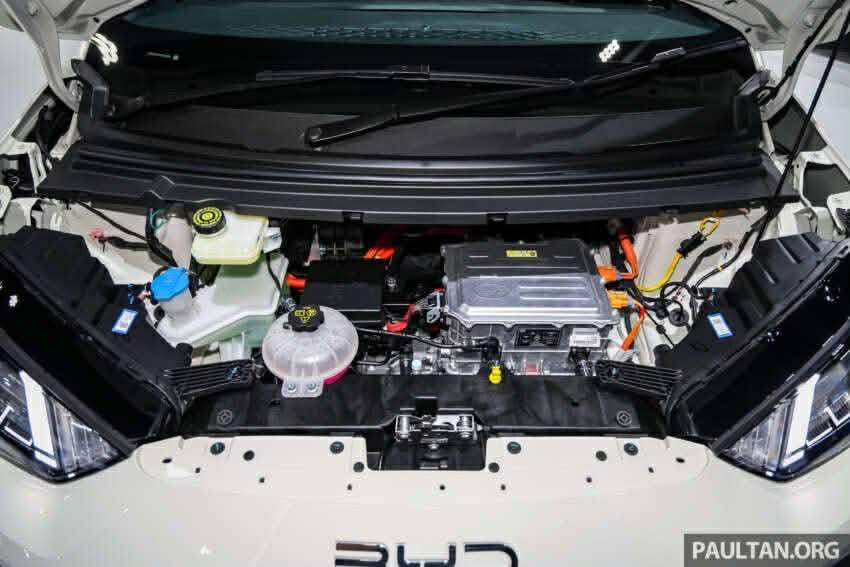 BYD Atto 1 sử dụng mô-tơ điện đặt phía trước với công suất 75 PS và mô-men xoắn 135 Nm, đủ đáp ứng nhu cầu di chuyển hàng ngày trong thành phố. Xe đi kèm bộ pin Blade Battery đặc trưng của BYD, với hai tùy chọn dung lượng gồm 30,08 kWh và 38,88 kWh.