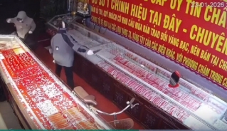 Khi xông vào tiệm vàng 2 đối tượng đe dọa chủ cửa hàng, phá tủ kính, cướp nhiều trang sức bằng vàng rồi nhanh chóng tẩu thoát khỏi hiện trường.