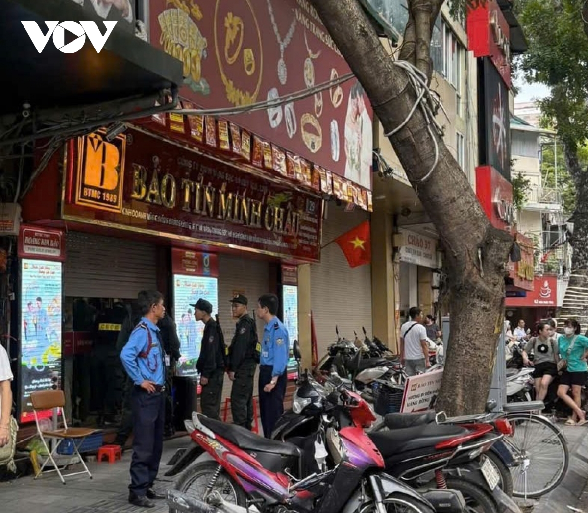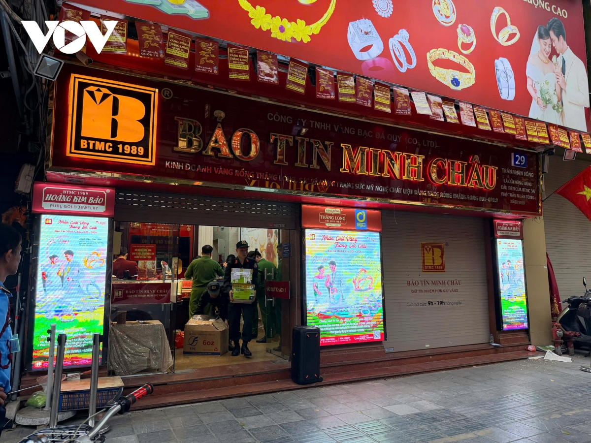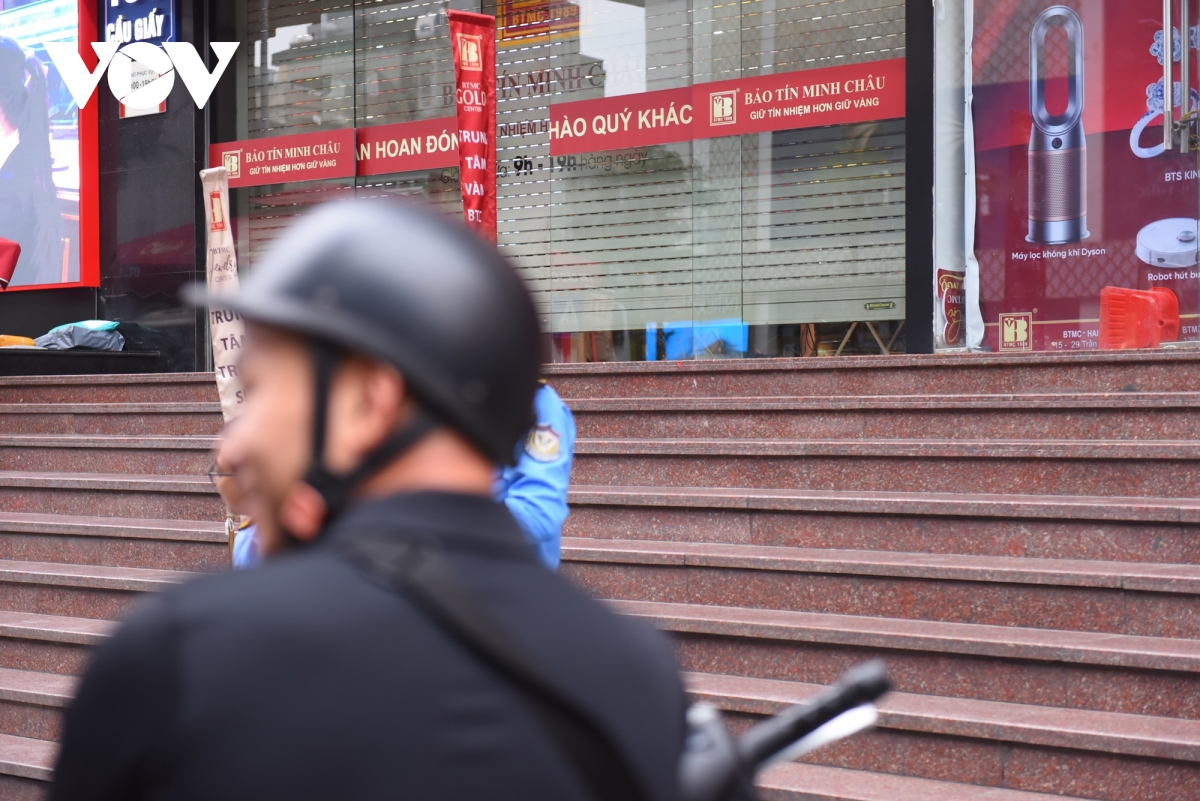 Lực lượng công an xuất hiện tại cửa hàng Bảo Tín Minh Châu số 29 phố Trần Nhân Tông.