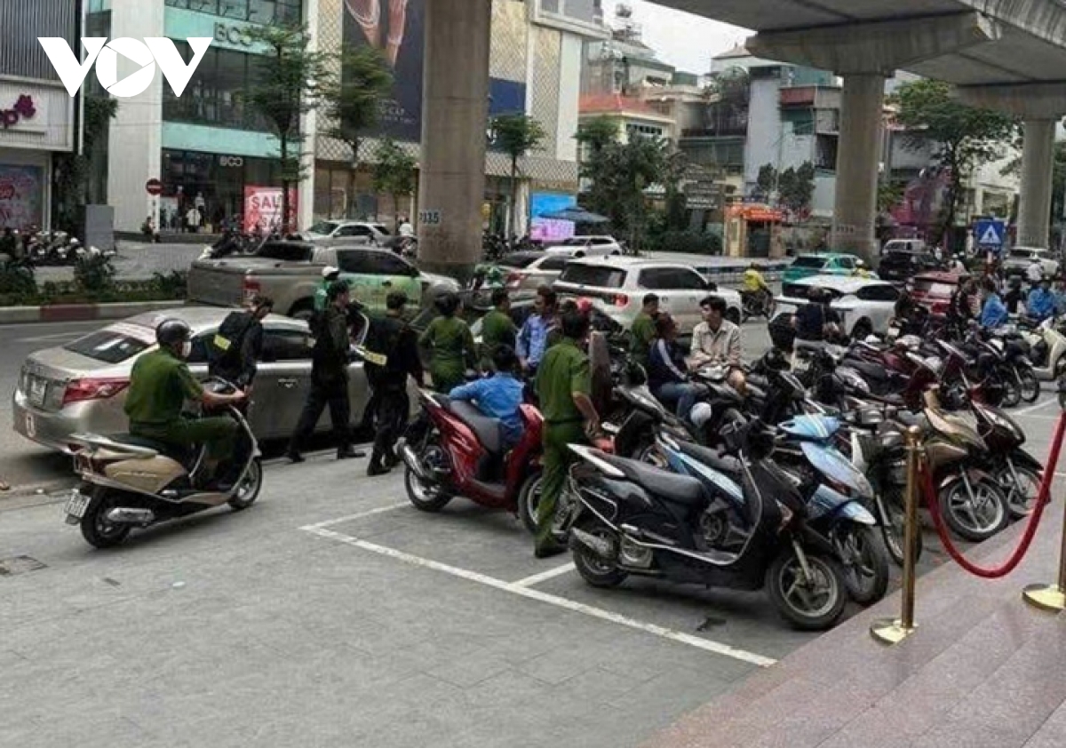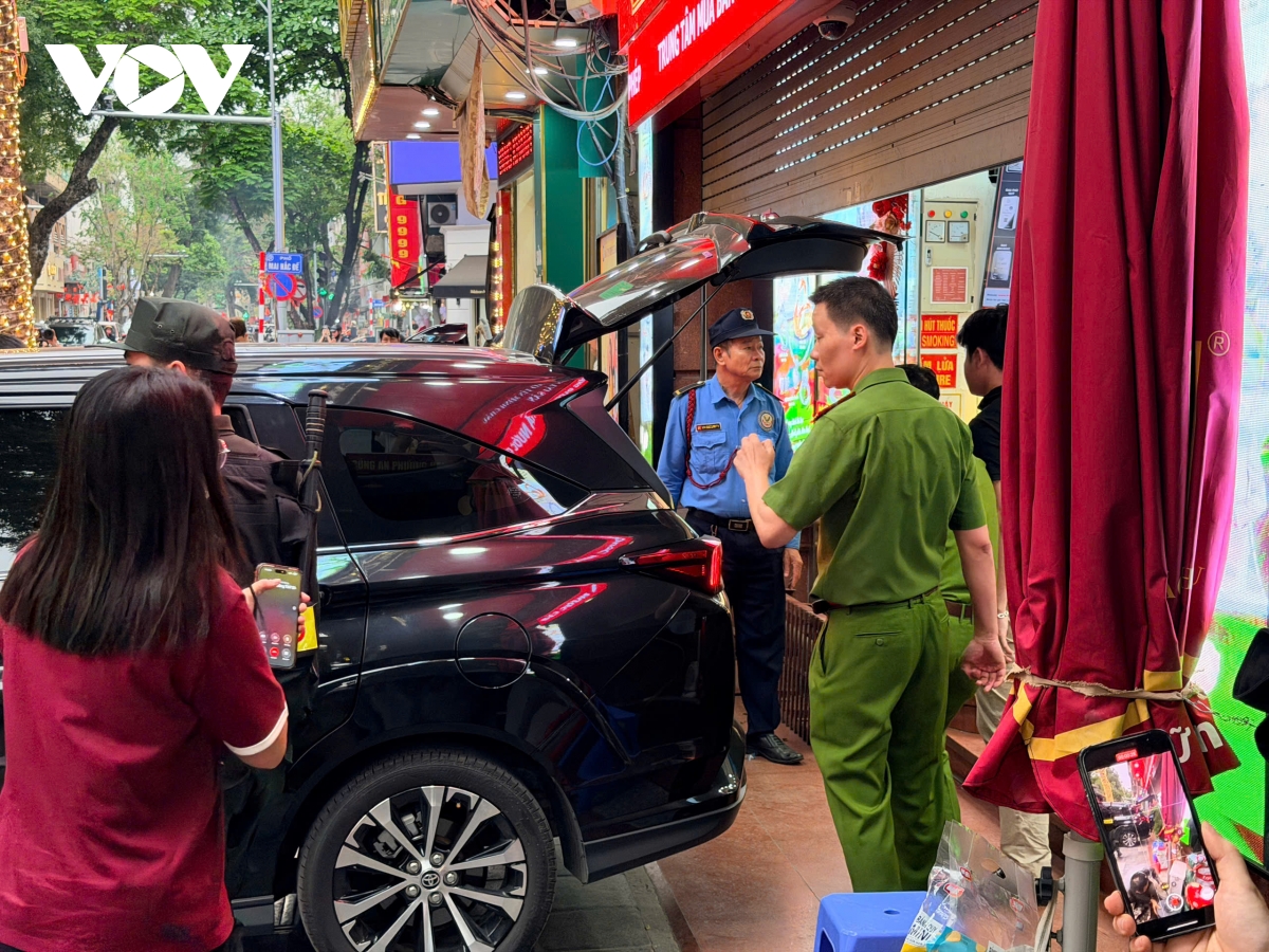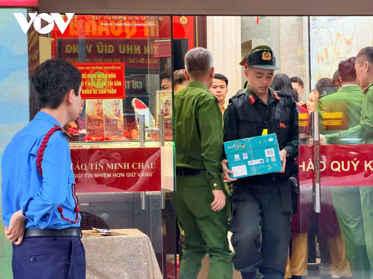 Lực lượng công an xuất hiện tại cửa hàng Bảo Tín Minh Châu số 29 phố Trần Nhân Tông.