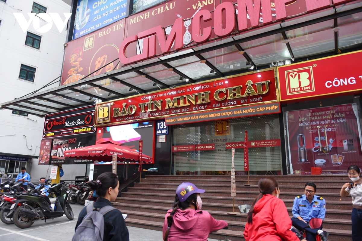 VOV.VN - Ngày 25/3, khi lực lượng công an xuất hiện, một số cửa hàng Bảo Tín Minh Châu tại TP Hà Nội đã phải đóng cửa khiến nhiều khách đến giao dịch vàng tỏ ra bất ngờ.