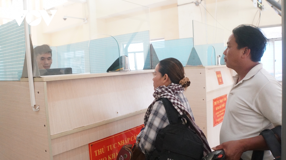 Người dân thực hiện thủ tục nhập cảnh qua Cửa khẩu Quốc tế Xa Mát