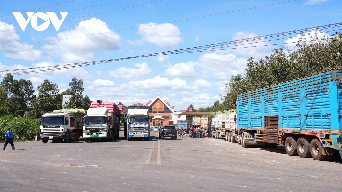 Hàng xe nông sản nối dài tại Cửa khẩu Quốc tế Xa Mát