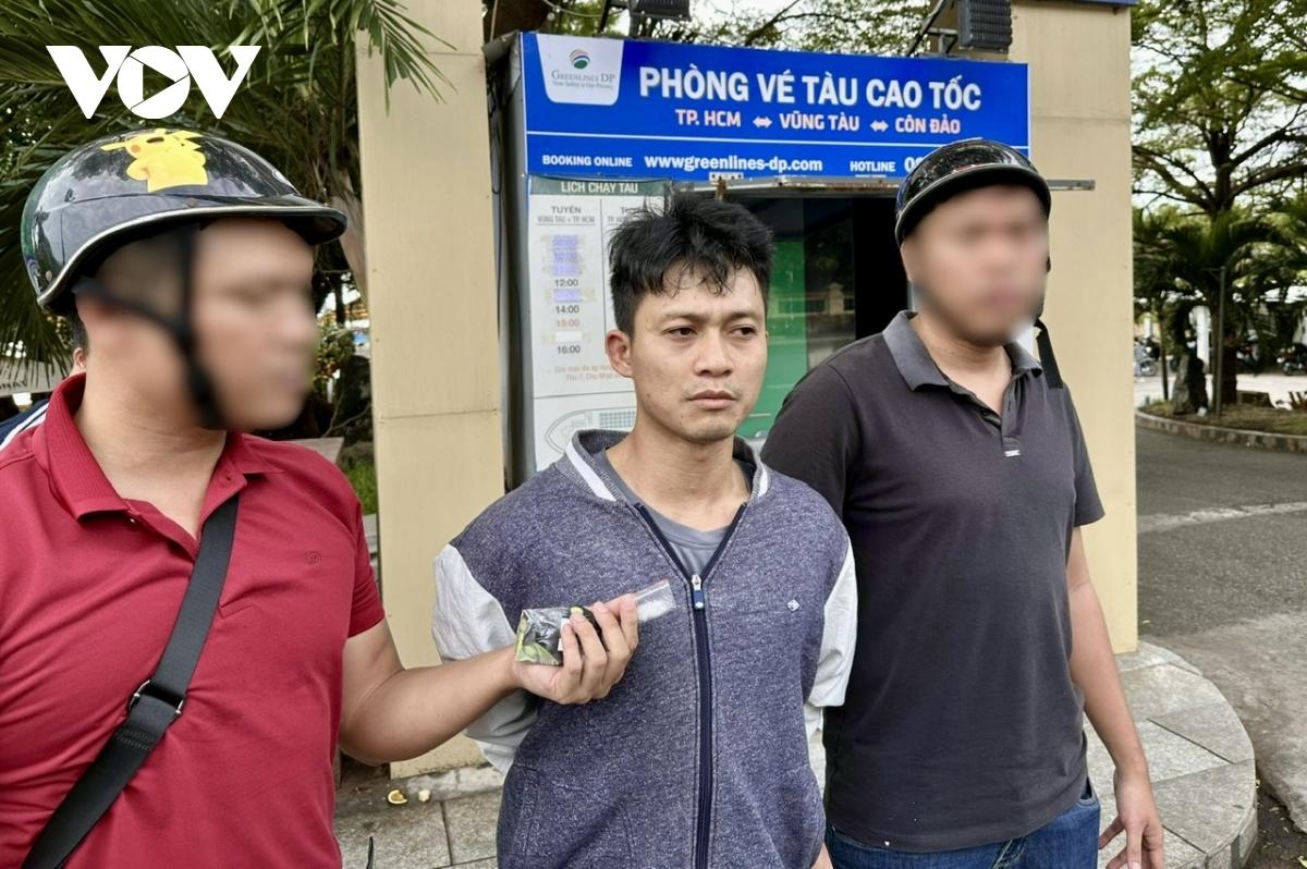 Chiều cùng ngày, tại bến tàu cao tốc Vũng Tàu – TP.HCM, Phòng phòng chống tội phạm, vi phạm thuộc Bộ Tư lệnh Vùng Cảnh sát biển 3 phối hợp với Công an phường Vũng Tàu và Đội Kiểm soát Hải quan (Chi cục Hải quan Khu vực II) tiến hành kiểm tra, bắt quả tang đối tượng Nguyễn Xuân Mạnh, sinh năm 1994, trú tại phường Vũng Tàu, TP.HCM có hành vi tàng trữ trái phép chất ma túy.