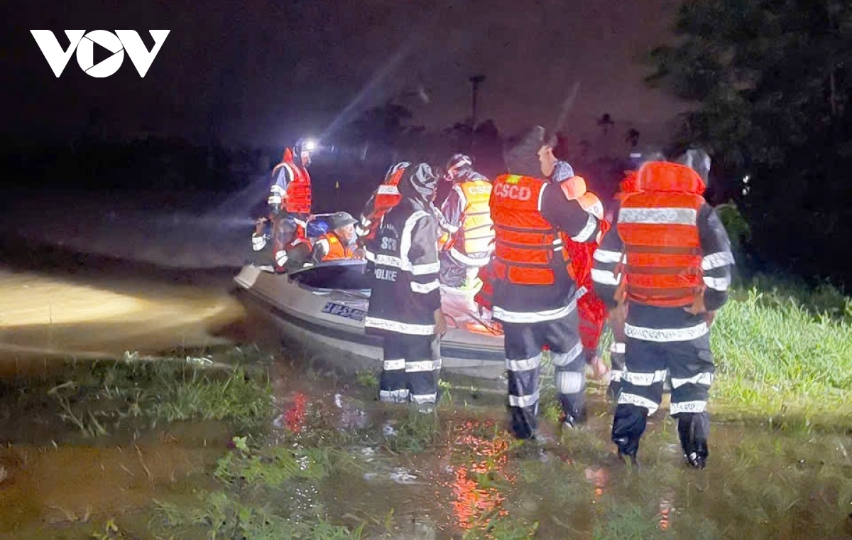 VOV.VN - Đêm 28/10, rạng sáng 29/10, Đoàn Cảnh sát đặc nhiệm số 3 (thuộc Bộ Tư lệnh Cảnh sát cơ động) đã hỗ trợ di dời hàng chục hộ dân tại khu vực trũng thấp xã Hòa Tiến, TP Đà Nẵng bị ảnh hưởng bởi ngập sâu.
