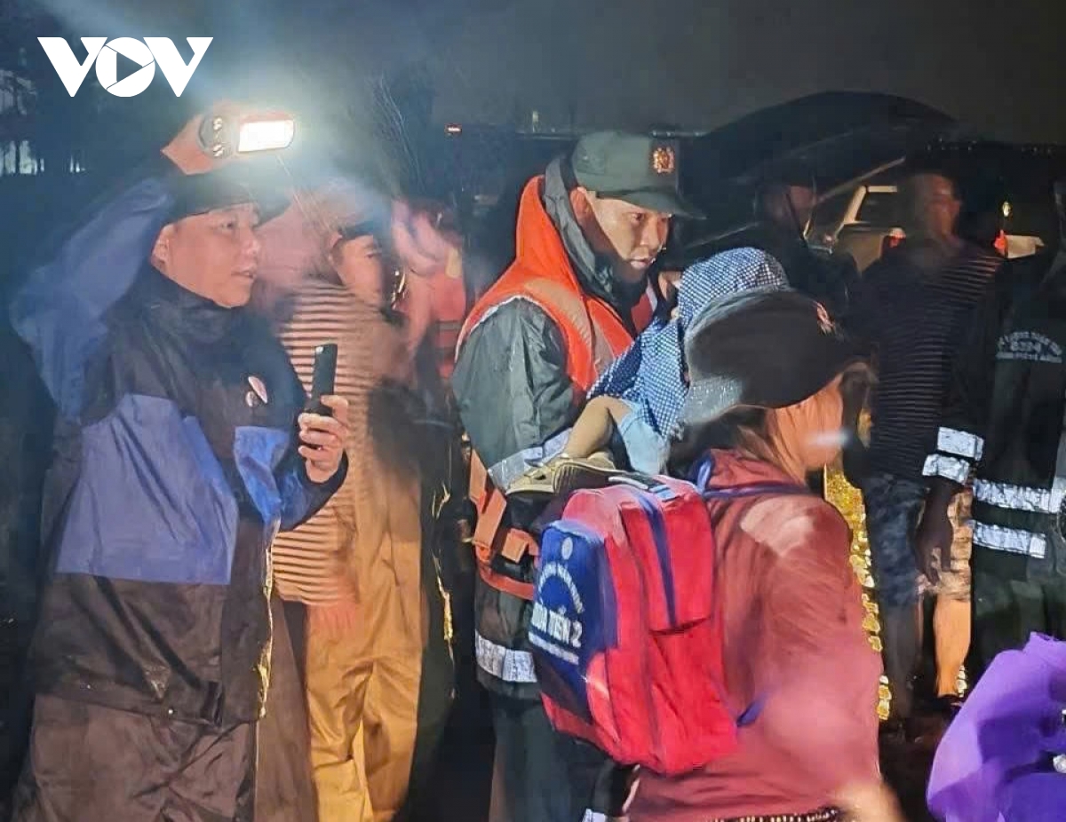 Lực lượng chức năng đã di dời 24 người dân gồm một phụ nữ mang thai, một trẻ sốt cao, một người cao tuổi bị liệt. Còn lại đa phần là người già, trẻ em, phụ nữ cần được di dời kịp thời khi nước lũ đang dâng lên trên địa bàn các thôn: Lệ Sơn 2, Cẩm Nê, An Trạch thuộc xã Hòa Tiến, TP Đà Nẵng.