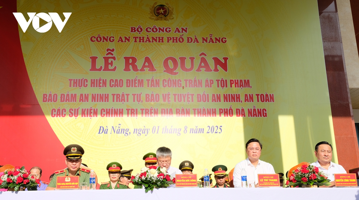 VOV.VN - Sáng nay (1/8), Công an thành phố Đà Nẵng phát động ra quân thực hiện cao điểm tấn công trấn áp tội phạm, bảo đảm an ninh trật tự, bảo vệ tuyệt đối an ninh, an toàn các sự kiện chính trị trên địa bàn thành phố Đà Nẵng.