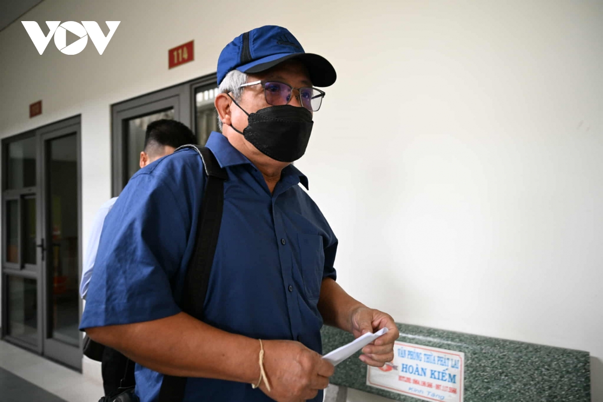 Sáng 12/5, cựu Thứ trưởng Bộ Tài nguyên và Môi trường (cũ) Nguyễn Linh Ngọc cùng các bị cáo đã có mặt tại TAND TP Hà Nội để hầu toà trong vụ án sai phạm tại mỏ đất hiếm Yên Phú (Yên Bái). (Ảnh: Trọng Phú)