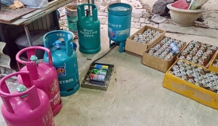 Ngoài ra, lực lượng chức năng còn phát hiện 112 bình gas loại 300g đã được san chiết, 222 vỏ bình chưa san chiết, 58 bình gas loại 12kg chưa sử dụng, 7 bình gas loại 45kg chưa sử dụng và 2 vỏ bình gas 12kg đã qua sử dụng được tập kết tại khu vực sân trước cửa bếp.