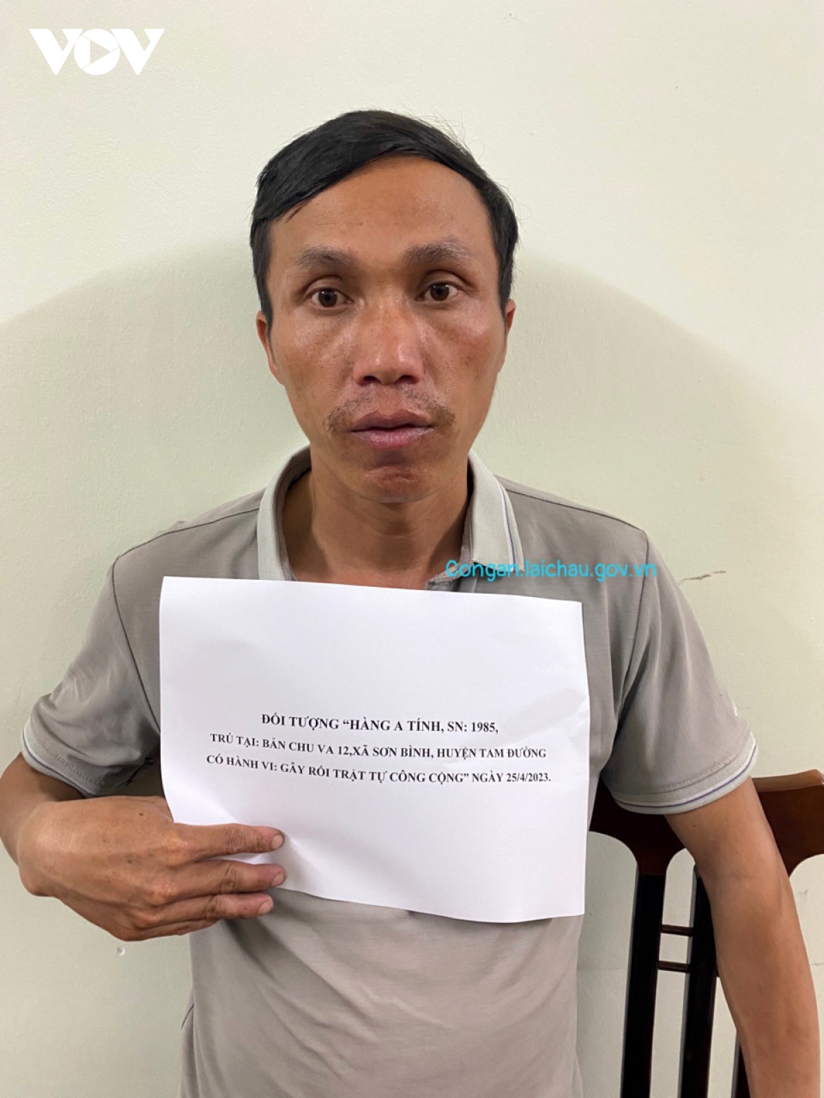 Văn phòng Cơ quan Cảnh sát điều tra, Công an tỉnh Lai Châu thông tin, đơn vị vừa phối hợp với Phòng Cảnh sát giao thông, Công an huyện Tam Đường (Lai Châu) thi hành lệnh bắt bị can để tạm giam đối với Hàng A Tính, sinh năm 1985, trú tại bản Chu Va 12, xã Sơn Bình, huyện Tam Đường về hành vi gây rối trật tự công cộng theo quy định tại điều 318 Bộ luật hình sự.