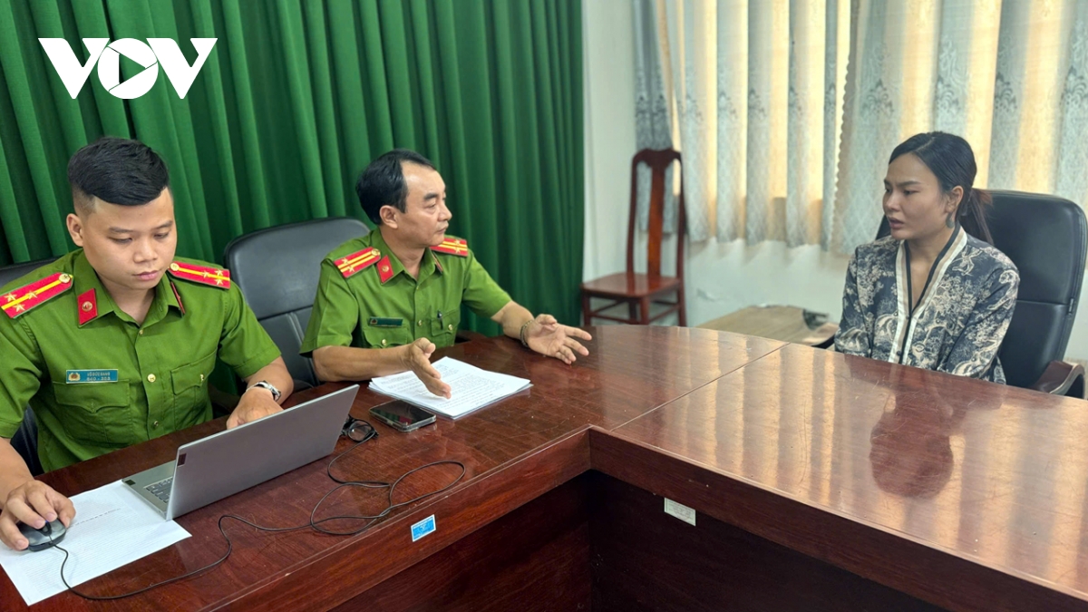 Nguyễn Thị Kim Hoa tại cơ quan công an