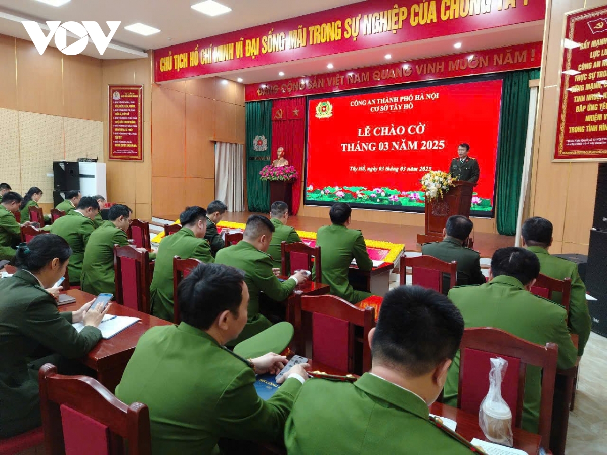 Trong sáng sớm, Thượng tá Lê Hồng Hải, Phó trưởng phòng Tham mưu - Công an TP Hà Nội, trưởng cơ sở Tây Hồ đã điều hành hoạt động thường ngày của lực lượng. Sau nghi lễ chào cờ thứ Hai đầu tuần, Thượng tá Lê Hồng Hải đã thông báo tình hình, nhiệm vụ cần triển khai ngay, đồng thời đề nghị cán bộ, chiến sĩ thực hiện nghiêm túc, bắt tay vào nhiệm vụ.