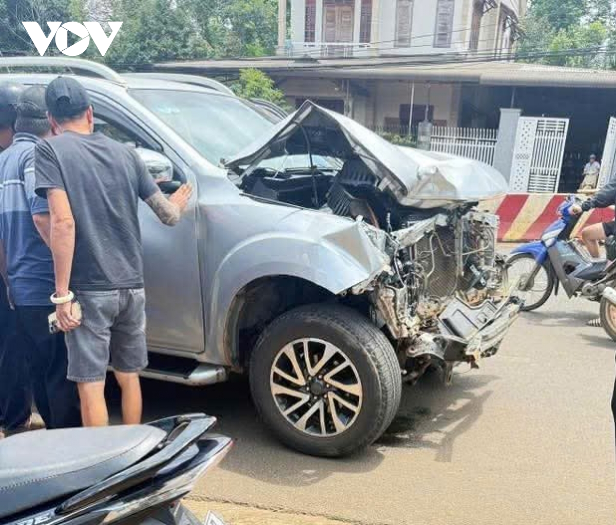 Chiếc ô tô bán tải do Lực điều khiển gây tai nạn liên hoàn bị hư hỏng nặng phần đầu