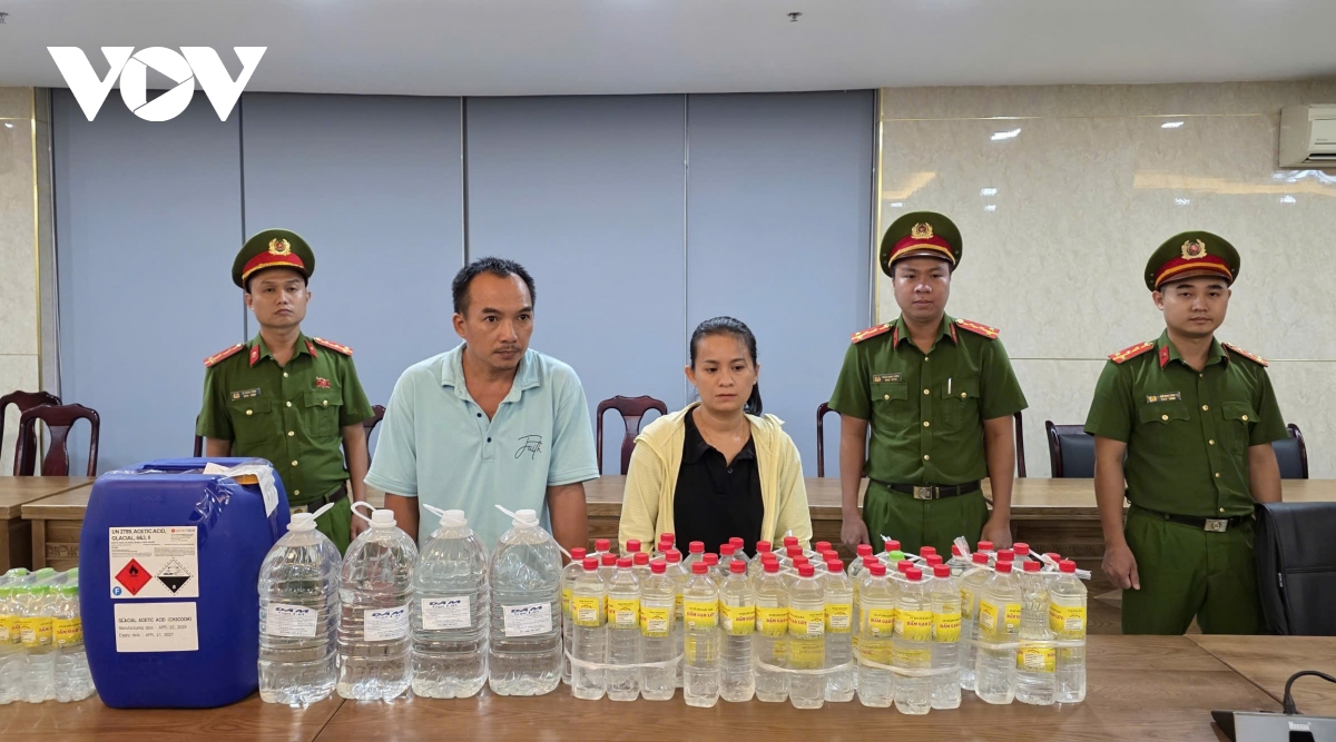 Tiến hành khám xét xưởng sản xuất, Phòng Cảnh sát kinh tế thu giữ hơn 2.000 chai giấm giả thành phẩm (tương đương hơn 2.000 lít giấm giả), cùng 20 can axit axetic nguyên chất (tương đương khoảng 6.00 lít axit. Theo tính toán sơ bộ, số nguyên liệu này có thể được sử dụng để sản xuất khoảng 30.000 lít giấm giả đưa ra thị trường, gây hậu quả đặc biệt nghiêm trọng cho người tiêu dùng.