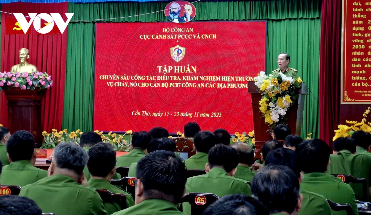 VOV.VN - Ngày 17/11 tại Cần Thơ, Cục Cảnh sát Phòng cháy chữa cháy và cứu nạn cứu hộ (PCCC và CNCH), Bộ Công an tổ chức tập huấn chuyên sâu công tác điều tra, khám nghiệm hiện trường vụ cháy, nổ cho cán bộ PC07 của Công an các địa phương năm 2025.