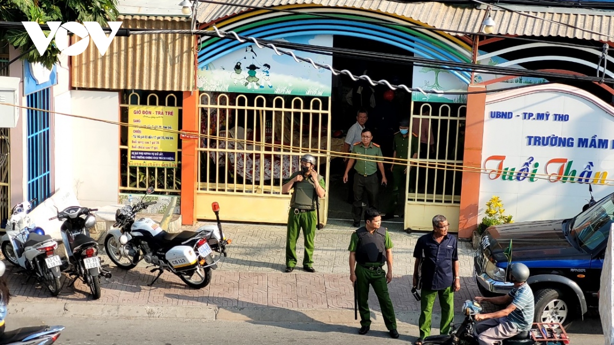 Nhận tin báo, công an Thành phố Mỹ Tho và tỉnh Tiền Giang đã khẩn trương có mặt tại hiện trường, áp dụng các biện pháp để sớm khống chế đối tượng này, đảm bảo an toàn cho các em. Việc khống chế, truy bắt đối tượng có cầm hung khí khống chế trẻ rất khó khăn, lực lượng làm nhiệm vụ phải tích cực tuyên truyền thuyết phục, nhằm tránh gây thương tích cho trẻ em. Bằng các biện pháp nghiệp vụ, đến khoảng 9 giờ sáng nay, cơ quan công an đã khống chế, bắt giữ đối tượng, đảm bảo an toàn cho các trẻ em tại đây.