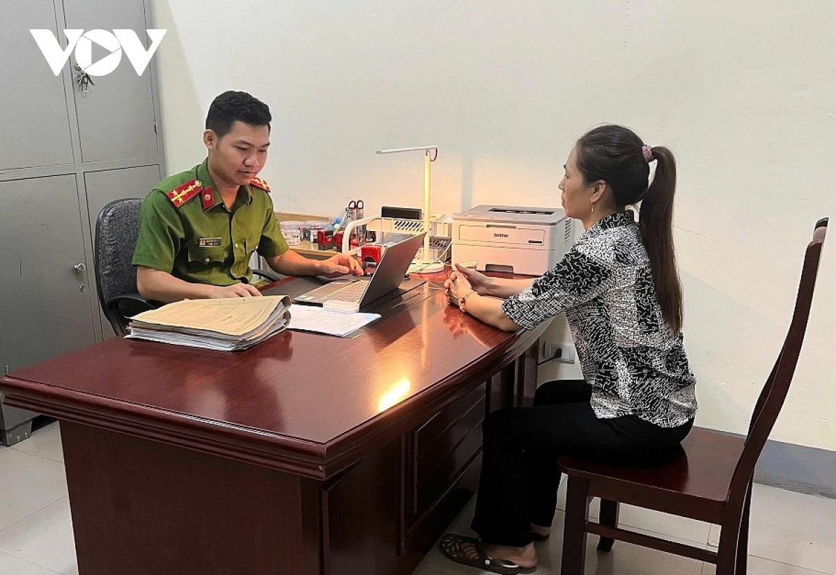 Đối tượng Nguyễn Thị Mai tại cơ quan Công an. Ảnh: Phan Tuyết.