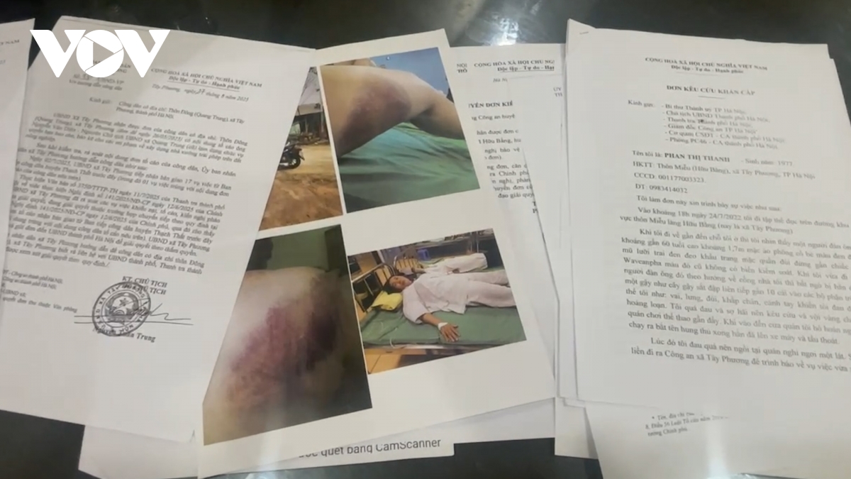 VOV.VN - Bị đe dọa, chửi bới, xúc phạm danh dự nhiều lần trong gần 4 năm qua, đỉnh điểm là bị một người lạ mặt dùng gậy sắt hành hung, nạn nhân cho rằng sự việc chỉ xảy ra sau khi gửi đơn tố cáo nhóm lãnh đạo xã Hữu Bằng, huyện Thạch Thất (cũ), TP Hà Nội.