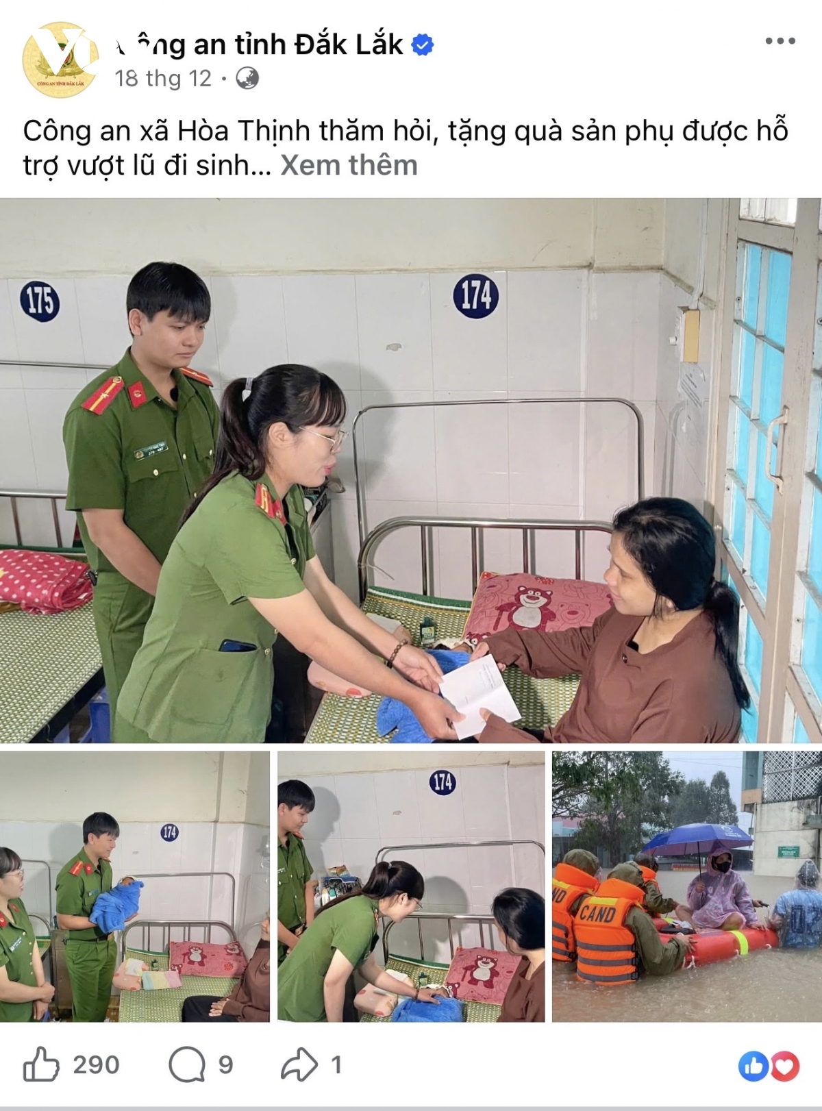 Từ hình ảnh kêu cứu đăng tải trên fanpage, Công an Đắk Lắk đã đưa người phụ nữ đi sinh đẻ an toàn trong lũ dữ.