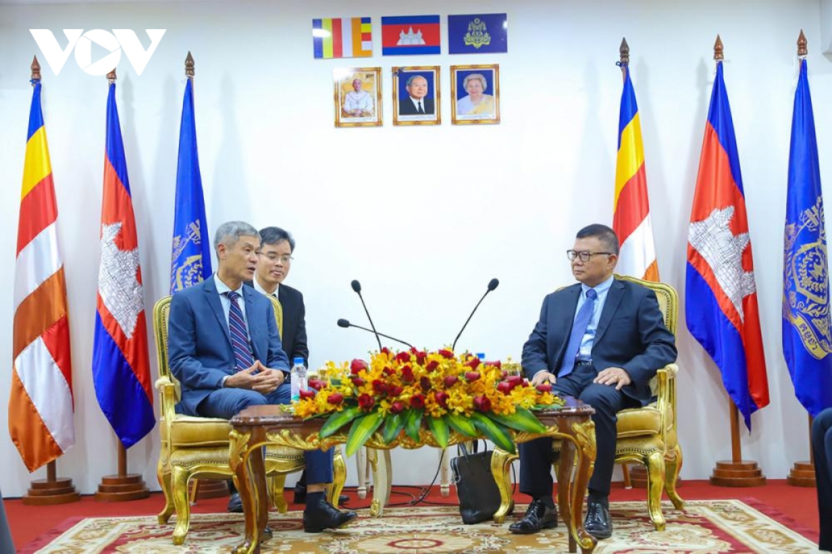 VOV.VN - Bộ trưởng cấp cao, Trưởng Ban Thư ký Ủy ban Chống lừa đảo trực tuyến Campuchia Chhay Sinarit và Đại sứ Việt Nam tại Campuchia Nguyễn Minh Vũ đã cùng nhau thảo luận và trao đổi quan điểm về các bước tiếp theo nhằm thúc đẩy hợp tác chặt chẽ hơn trong cuộc chiến chống các hoạt động lừa đảo trực tuyến.
