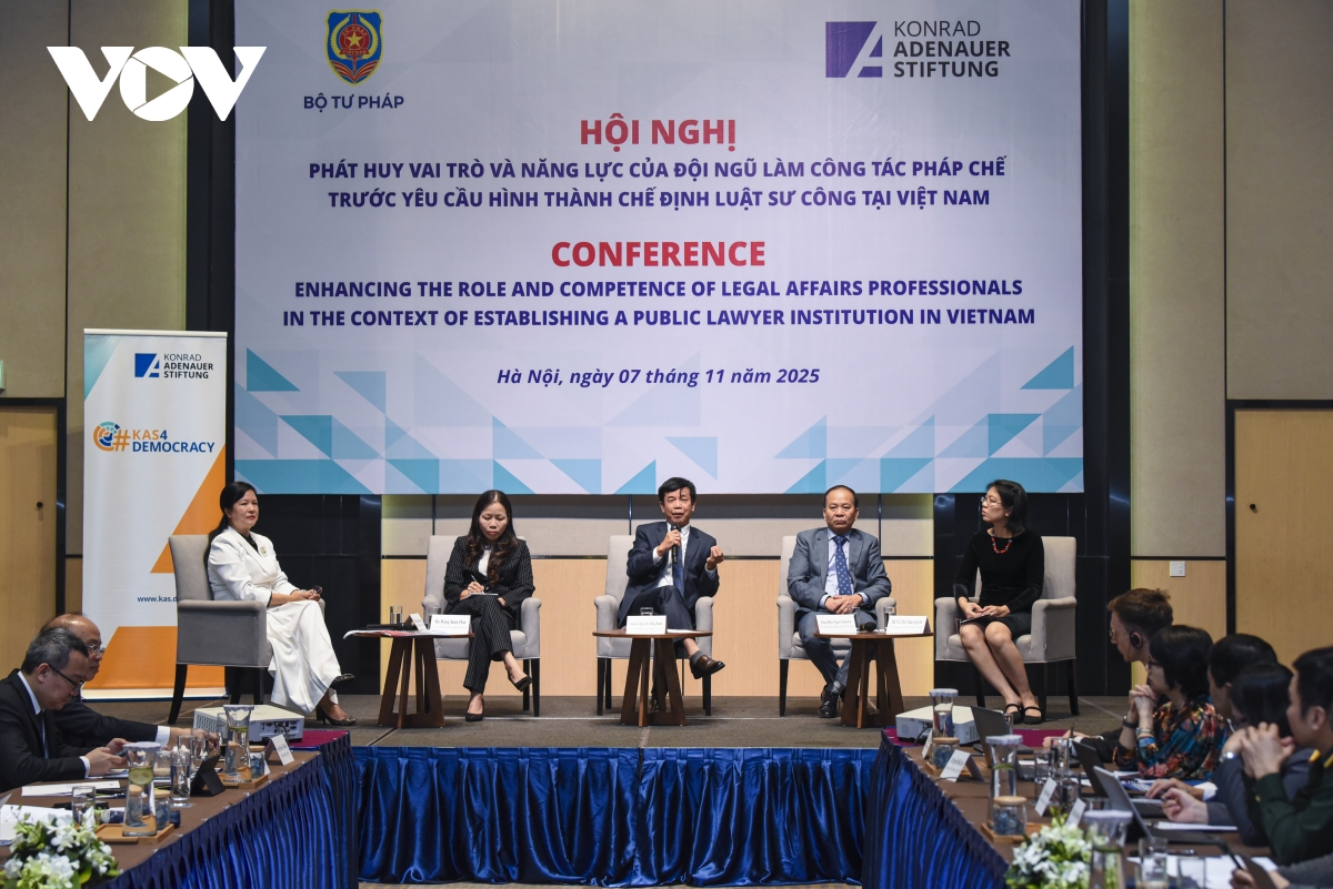 VOV.VN - Ngày 7/11, Bộ Tư pháp phối hợp với Viện Konrad Adenauer Stiftung (Viện KAS), Cộng hòa Liên bang Đức tổ chức Hội nghị “Phát huy vai trò và năng lực của đội ngũ làm công tác pháp chế trước yêu cầu hình thành chế định luật sư công tại Việt Nam”.