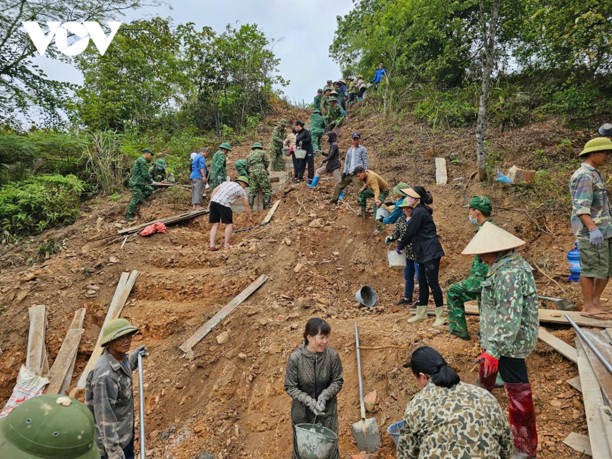 Cán bộ, chiến sĩ Biên phòng cùng người dân biên giới, các lực lượng đóng góp ngày công, chung tay xây dựng Đường kiểm tra cột mốc, bảo vệ biên giới