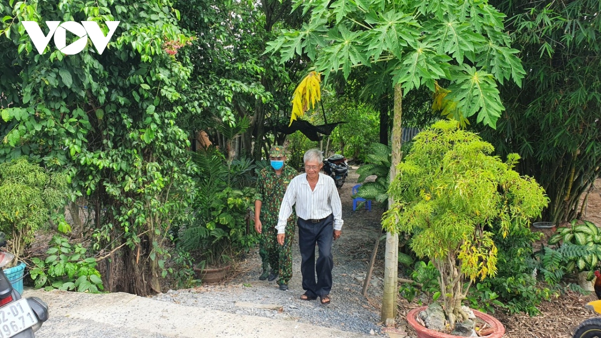 Sau mỗi ca trực, Trung úy Trần Bình Nam, Trạm trưởng Trạm Biên phòng Cửa khẩu Bình Hiệp, thị xã Kiến Tường, tỉnh Long An lại dành thời gian đến nhà ông Võ Văn Dũng, người dân tại địa phương để trò chuyện, thăm hỏi.