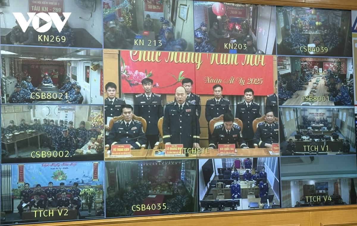 Chia sẻ với những khó khăn mà CBCS đang thực hiện nhiệm vụ trên các vùng biển của Tổ quốc, thủ trưởng Bộ Tư lệnh Cảnh sát biển ghi nhận nỗ lực của các cán bộ chiến sĩ đã triển khai nghiêm túc nhiệm vụ được giao. Tại Trung tâm Chỉ huy BTL Cảnh sát biển, qua hệ thống truyền hình vệ tinh, Trung tướng Lê Quang Đạo, Tư lệnh Cảnh sát biển cùng các đồng chí trong Thường vụ Đảng ủy, Thủ trưởng BTL Cảnh sát biển đã giao nhiệm vụ và chúc Tết cán bộ, chiến sĩ trên các tàu của lực lượng và các tàu phối thuộc của lực lượng Kiểm ngư, Hải đội Dân quân thường trực đang làm nhiệm vụ trực sẵn sàng chiến đấu, tuần tra, kiểm soát, chống khai thác IUU trên các vùng biển: Cũng qua hệ thống truyền hình vệ tinh, đồng chí Tư lệnh CSBVN thay mặt cho các đồng chí trong Thường vụ Đảng ủy, Thủ trưởng Bộ Tư lệnh Cảnh sát biển Việt Nam đã biểu dương tinh thần, trách nhiệm của cán bộ, chiến sĩ trên các tàu trực trong thực hiện nhiệm vụ trực Tết trên các vùng biển, đảo của Tổ quốc.