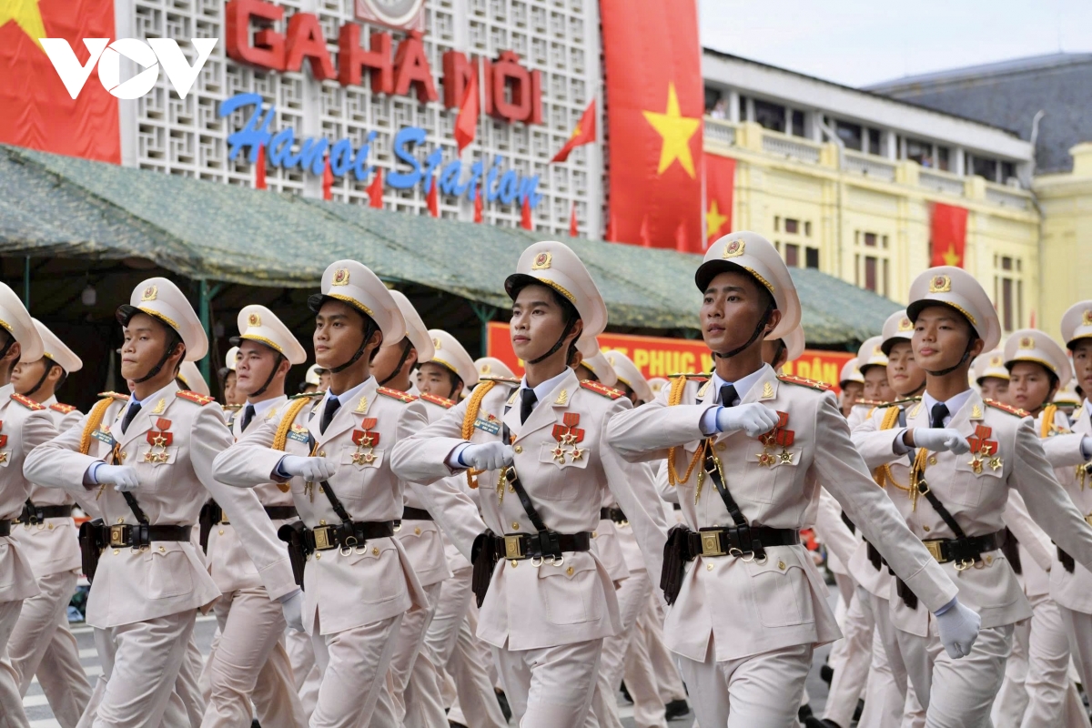 VOV.VN - Sau nhiều tháng tập luyện, hàng nghìn cán bộ, chiến sĩ của lực lượng Công an nhân dân tham gia Lễ tổng duyệt diễu binh, diễu hành kỷ niệm 80 năm Cách mạng Tháng Tám và Quốc khánh 2/9 (A80).