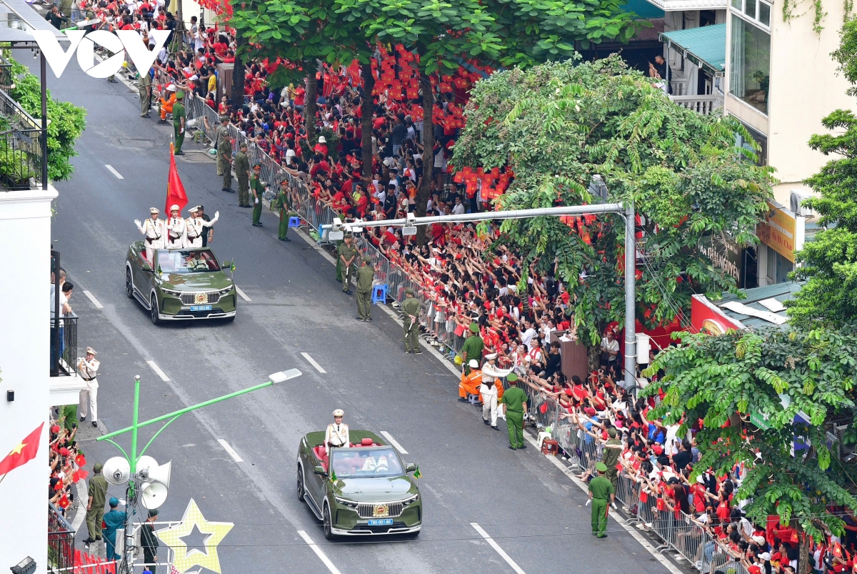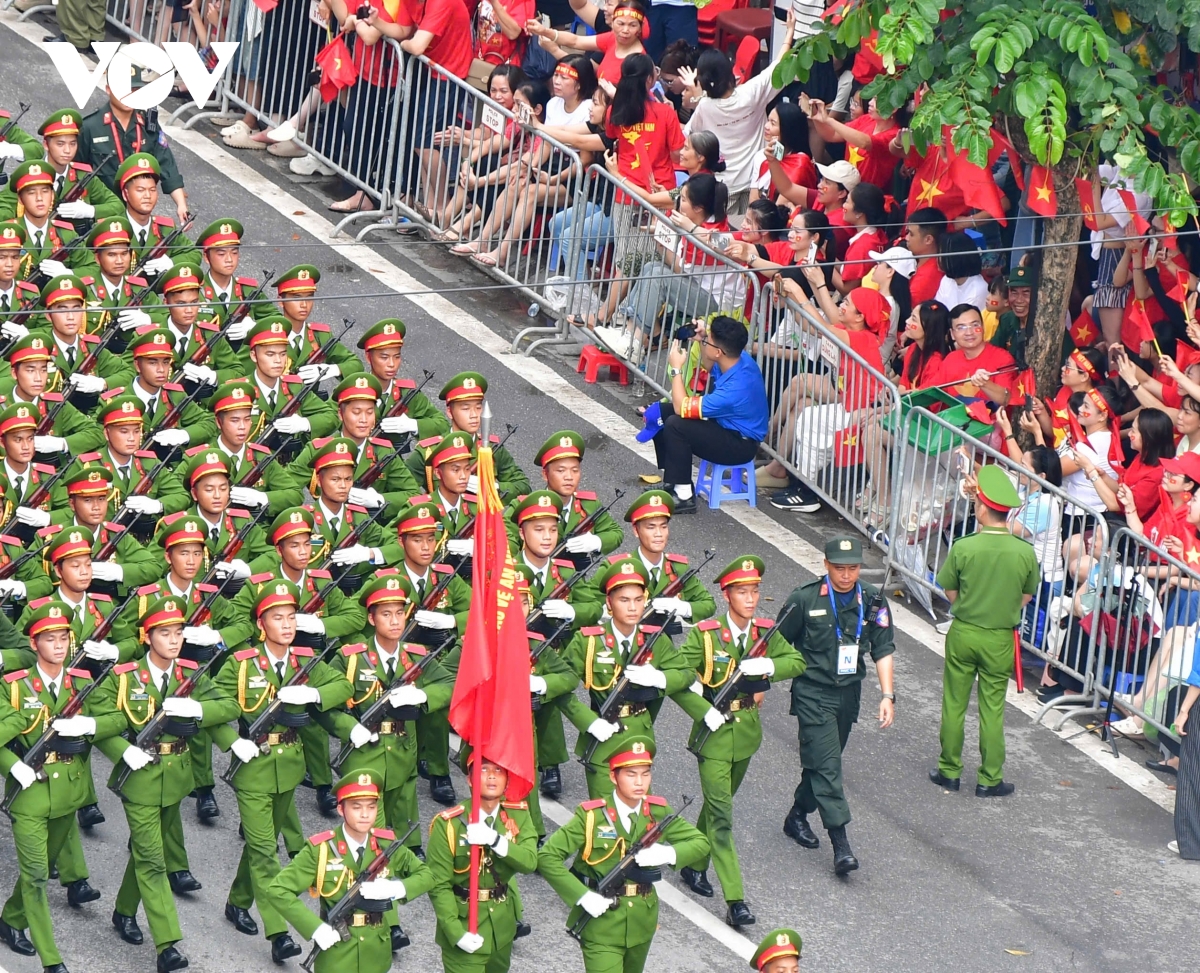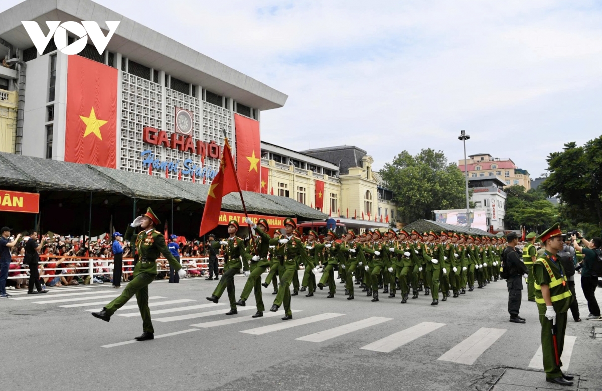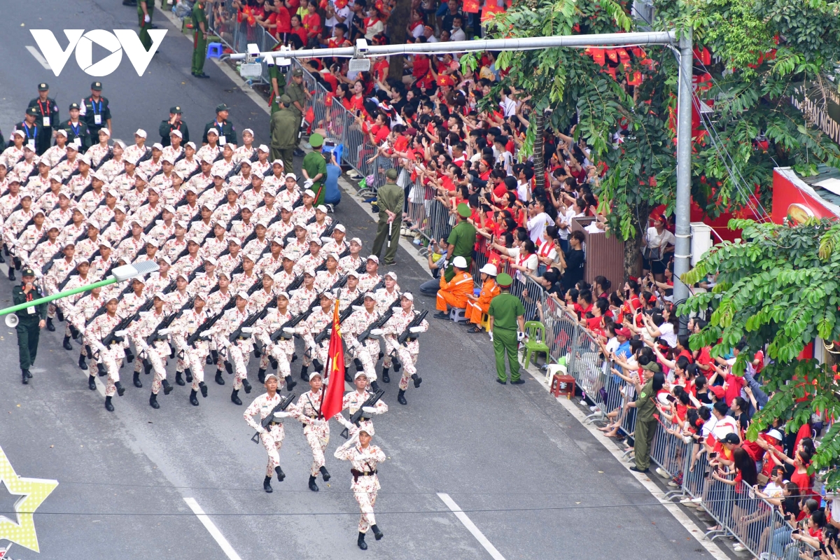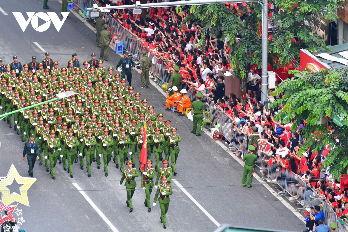 Sáng 30/8, Lễ tổng duyệt diễu binh, diễu hành kỷ niệm 80 năm Cách mạng Tháng Tám và Quốc khánh 2/9, diễn ra tại Quảng trường Ba Đình và các tuyến phố trung tâm. Sau khi diễu hành qua lễ đài, các khối đi qua nhiều tuyến phố trước sự đón chào của người dân.