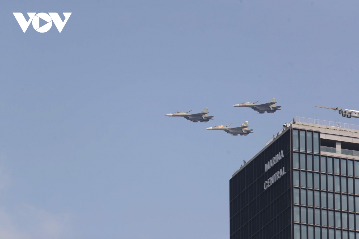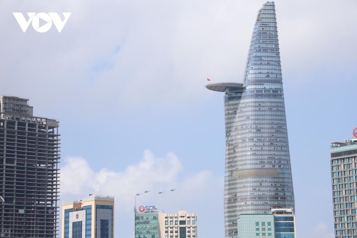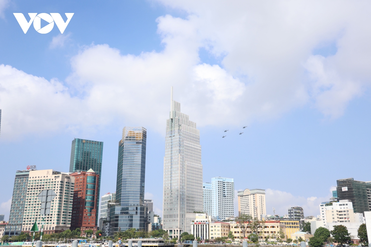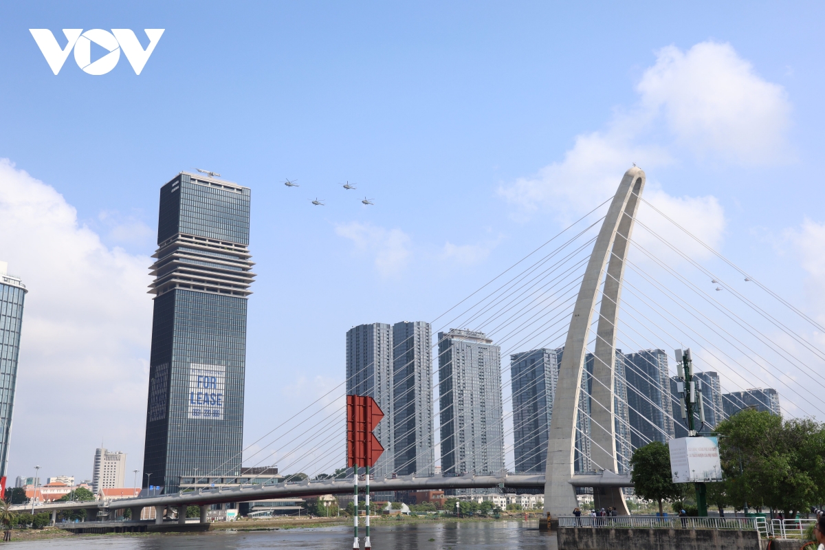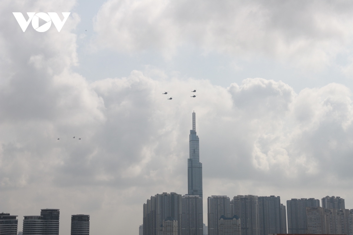 VOV.VN - Sáng 27/3, máy bay trực thăng, tiêm kích Su-30MK2, Yak-130 tập luyện trên bầu trời TP.HCM. Đây là lần đầu tiên phi đội bay thực hiện tập luyện trên bầu trời TP.HCM, nơi diễn ra lễ kỷ niệm 50 năm Ngày Giải phóng miền Nam, thống nhất đất nước (30/4/1975-30/4/2025).