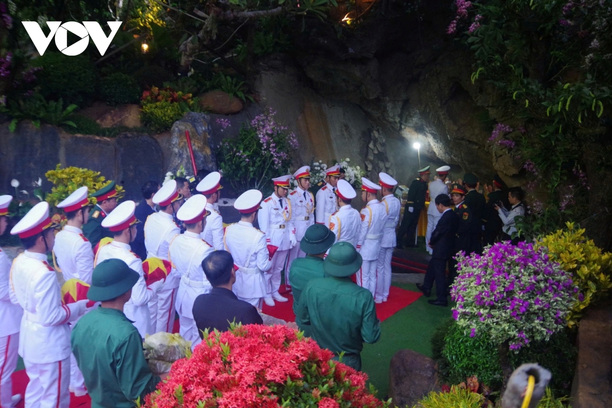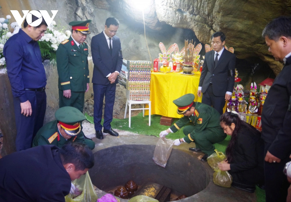 VOV.VN - Sáng 8/11, tại hang Tám Thanh niên xung phong (Hang Tám Cô), đường 20 Quyết Thắng, xã Thượng Trạch, tỉnh Quảng Trị, Tỉnh ủy, HĐND, UBND, Ủy ban Mặt trận Tổ quốc Việt Nam tỉnh Quảng Trị tổ chức lễ viếng, truy điệu, an táng hài cốt các Anh hùng liệt sĩ đã anh dũng hy sinh vì độc lập, tự do của Tổ quốc.