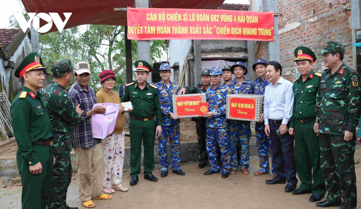 Trước đó, Tư lệnh Quân khu 5 đã đến thăm, tặng quà các gia đình và lực lượng xây dựng nhà giúp Nhân dân tại tỉnh Khánh Hòa.