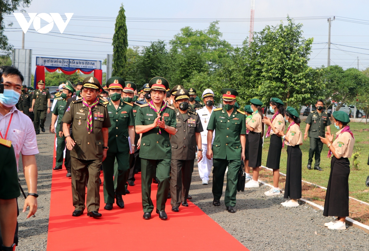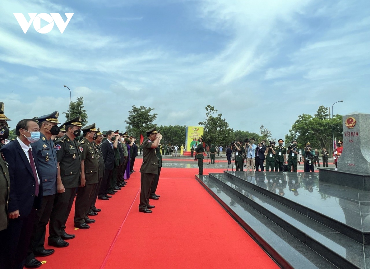 Ngay sau lễ đón, Bộ trưởng Bộ Quốc phòng hai nước Việt Nam – Campuchia đã thực hiện nghi lễ chào cột mốc biên giới, trồng cây hữu nghị, chứng kiến lực lượng biên phòng hai nước tiến hành tuần tra biên giới chung.