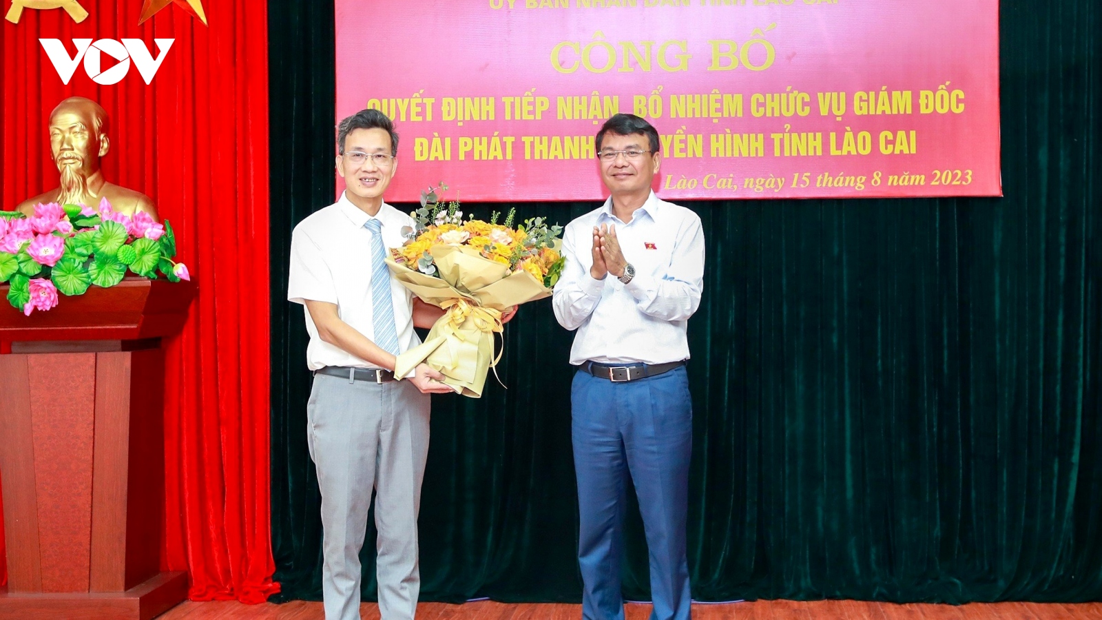 VOV.VN - Sáng nay (15/8), UBND tỉnh Lào Cai đã tổ chức Lễ công bố Quyết định tiếp nhận, bổ nhiệm chức vụ Giám đốc Đài Phát thanh - Truyền hình (PTTH) tỉnh Lào Cai cho Nhà báo Lê Trường Giang.